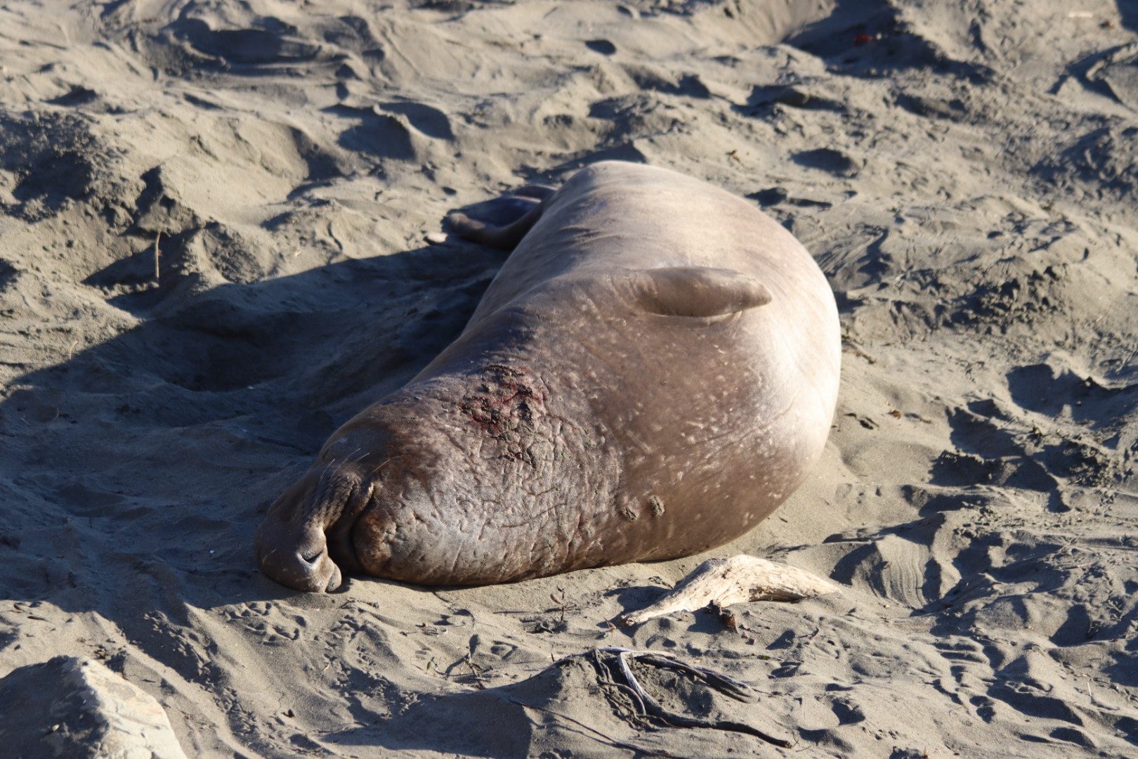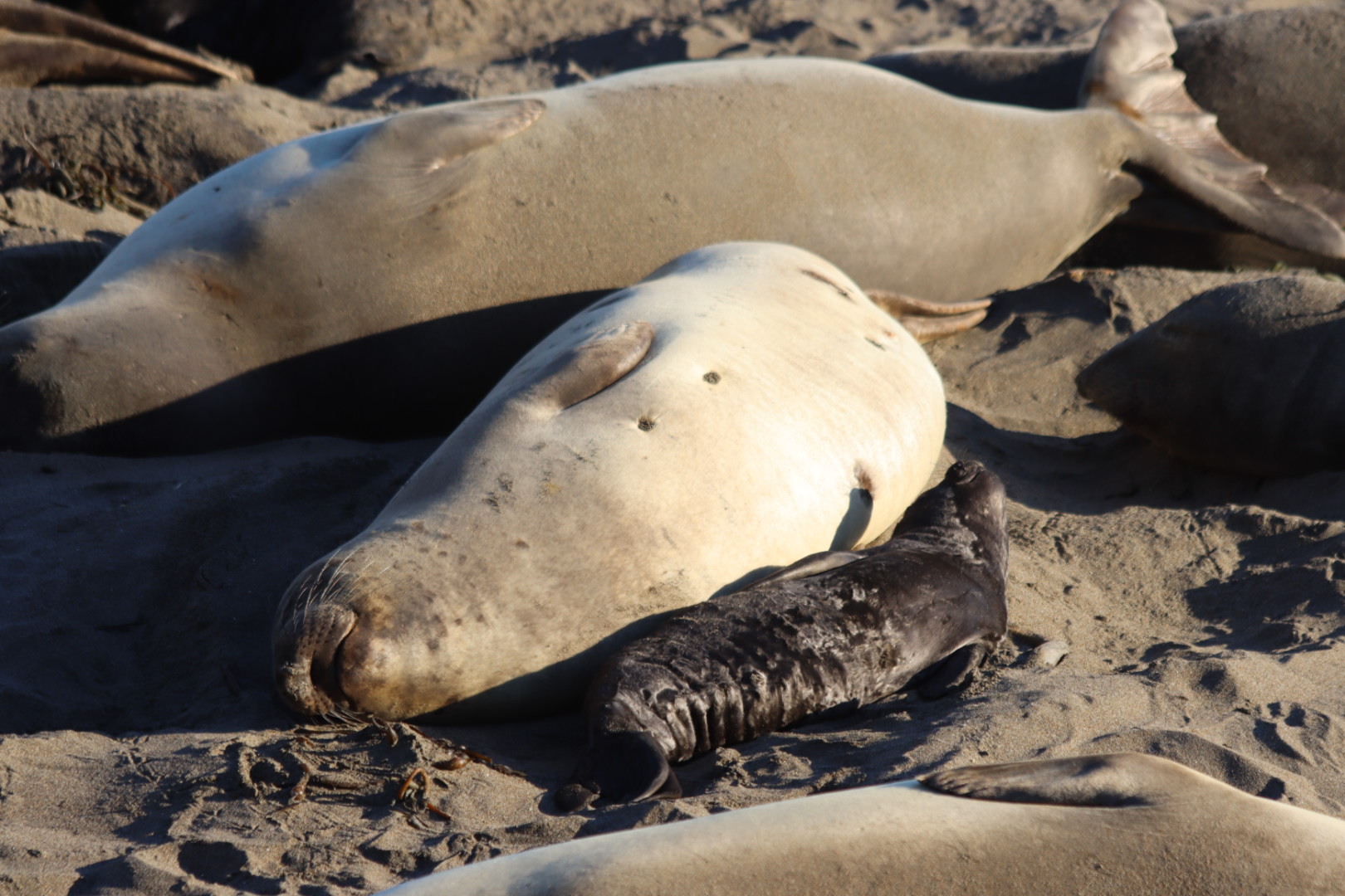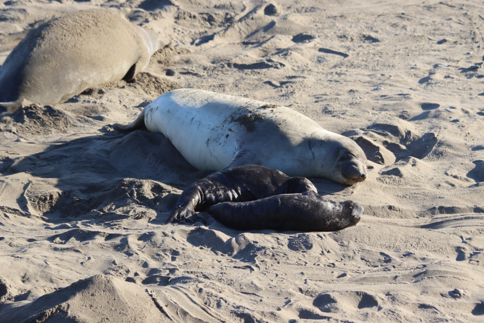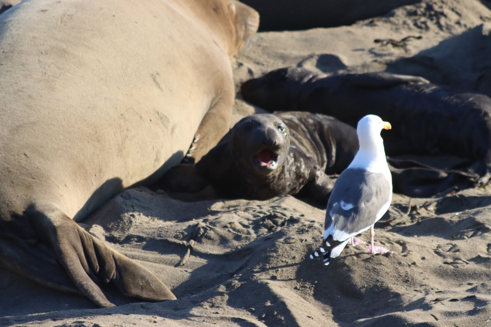 2. Me either! We were here last in May and many have left by then and juveniles are left alone there until they venture out to sea. I’ve been in the fall when they start to”haul out ” after their summer feeding, and I’ve been one time when I’ve seen bulls sparing for beach turf, must have been December. I’d love to have walked along farther on the great new boardwalk to see I can see any birthing. There were a few so wet from birth and many sea gulls patrolling, they do clean up of the beach, eating the remnants of placenta lying around. An amazing time to be here for sure.