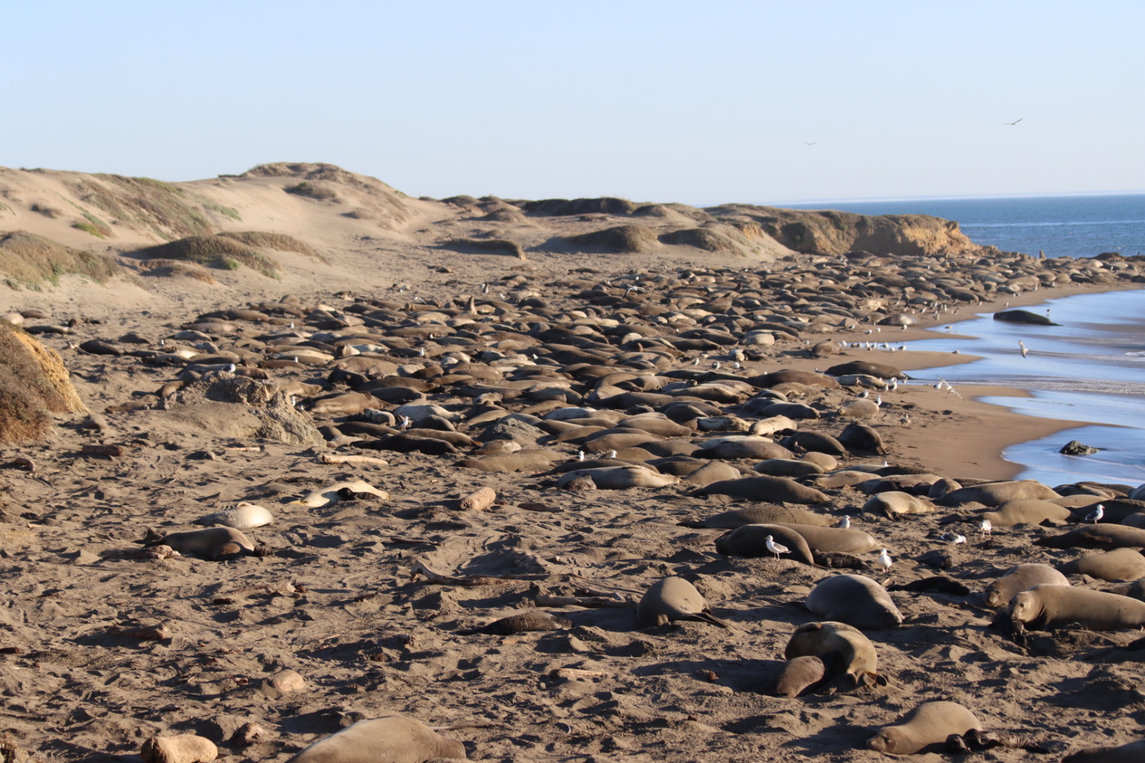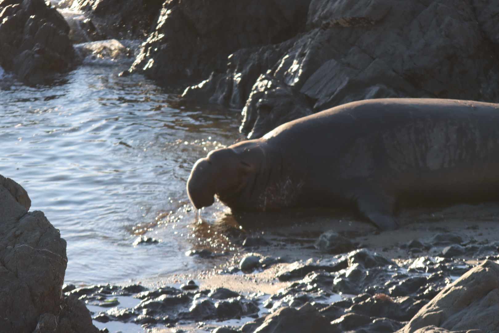 Since the 1990s Elephant seals have been breeding and birthing on a 7 mile stretch of beaches along this central coast, just north of San Simeon. Today about 25000 frequent these beaches, 10% of the world population. January is birthing season. We saw many newborns with their moms! Each Harem master, alpha male, has between 20 and 50 females that he guards until they are ready to wean pups and head back to sea, about 4 months. During this time all but the pups are fasting. The seals feeding grounds are far out to sea! This is a perfect time to see the seals, and if you never have seen this sight, come spend a couple days, It’s amazing!