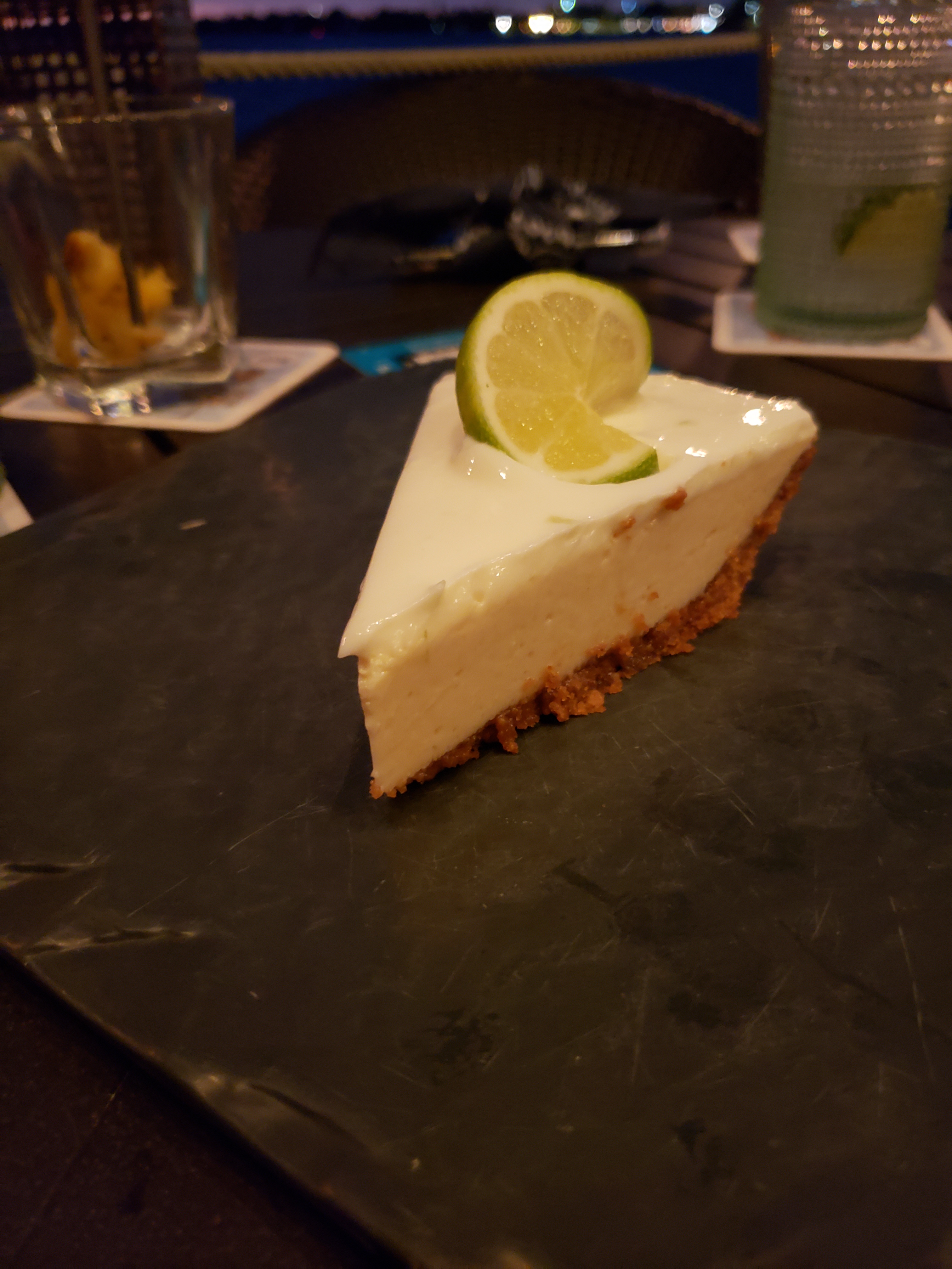 Huggo’s is closed Monday and Tuesday so we began celebrating a day early. Fritto misto, calamari and shrimp, I had a wonderful macadamia nut crusted mahi mahi, but devoured it before the picture. Birthday key line pie!