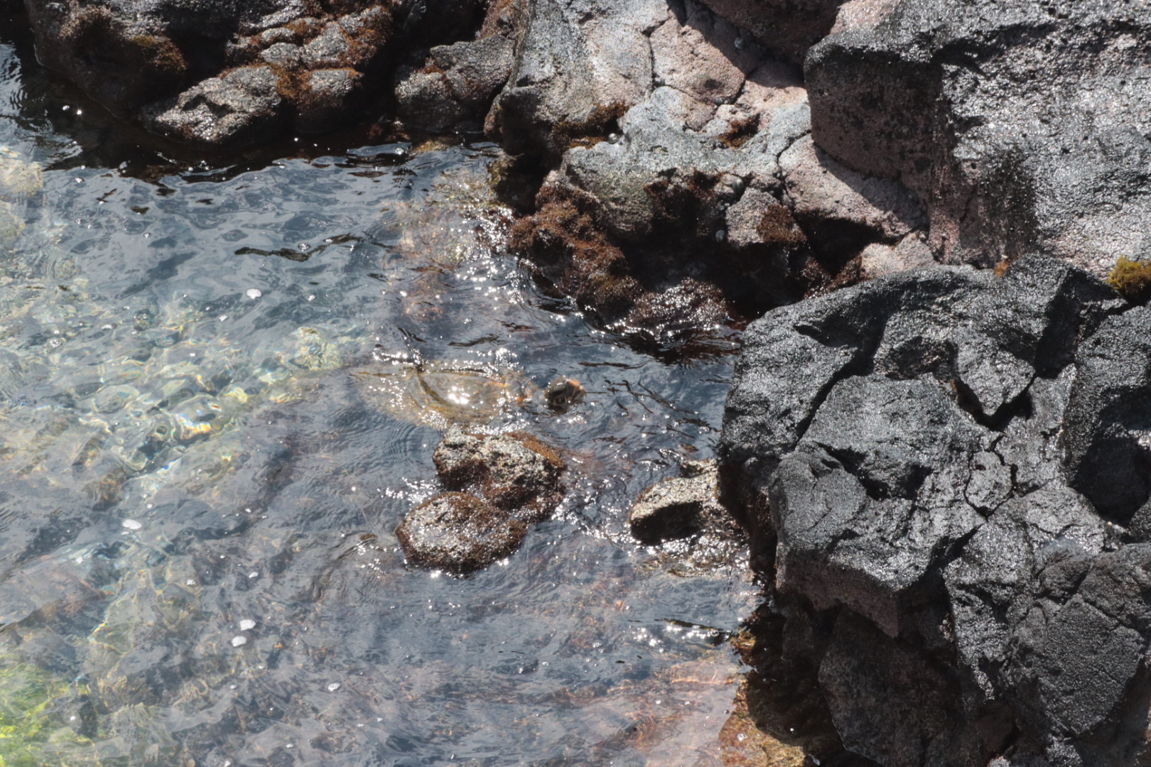 Yesterday it was calm and pleasant there so we spent some time relaxing on the sand and in the water. While we were there, someone discovered this sea turtle who managed to get thru the rough waters and into the Lagoon! We could see it Beautifully from our side lanai