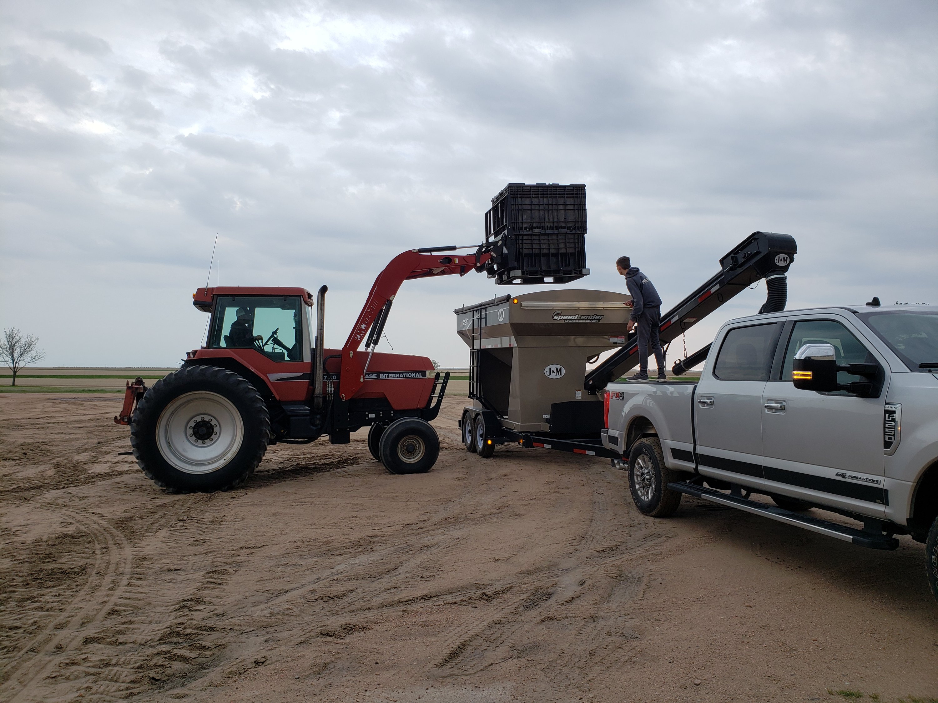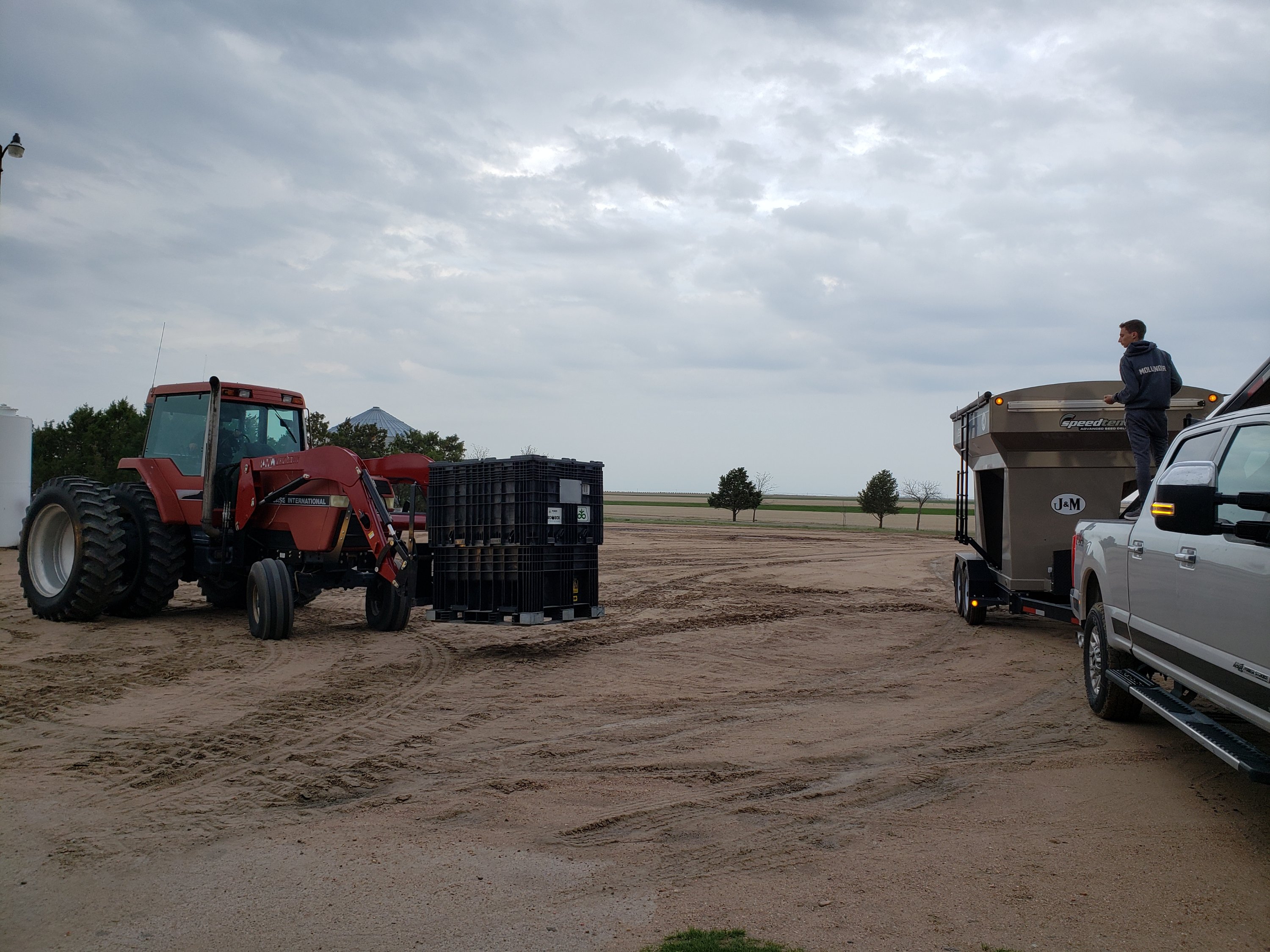I am visiting My daughter and SIL on their farm in Western Nebraska. I thought you would like to see the process of planting. Usually we are visiting during harvest or summer growth seasons! Spring planting is a whole different thing! Here David is refiling the fertilizers, seed, and insecticide in his planter.