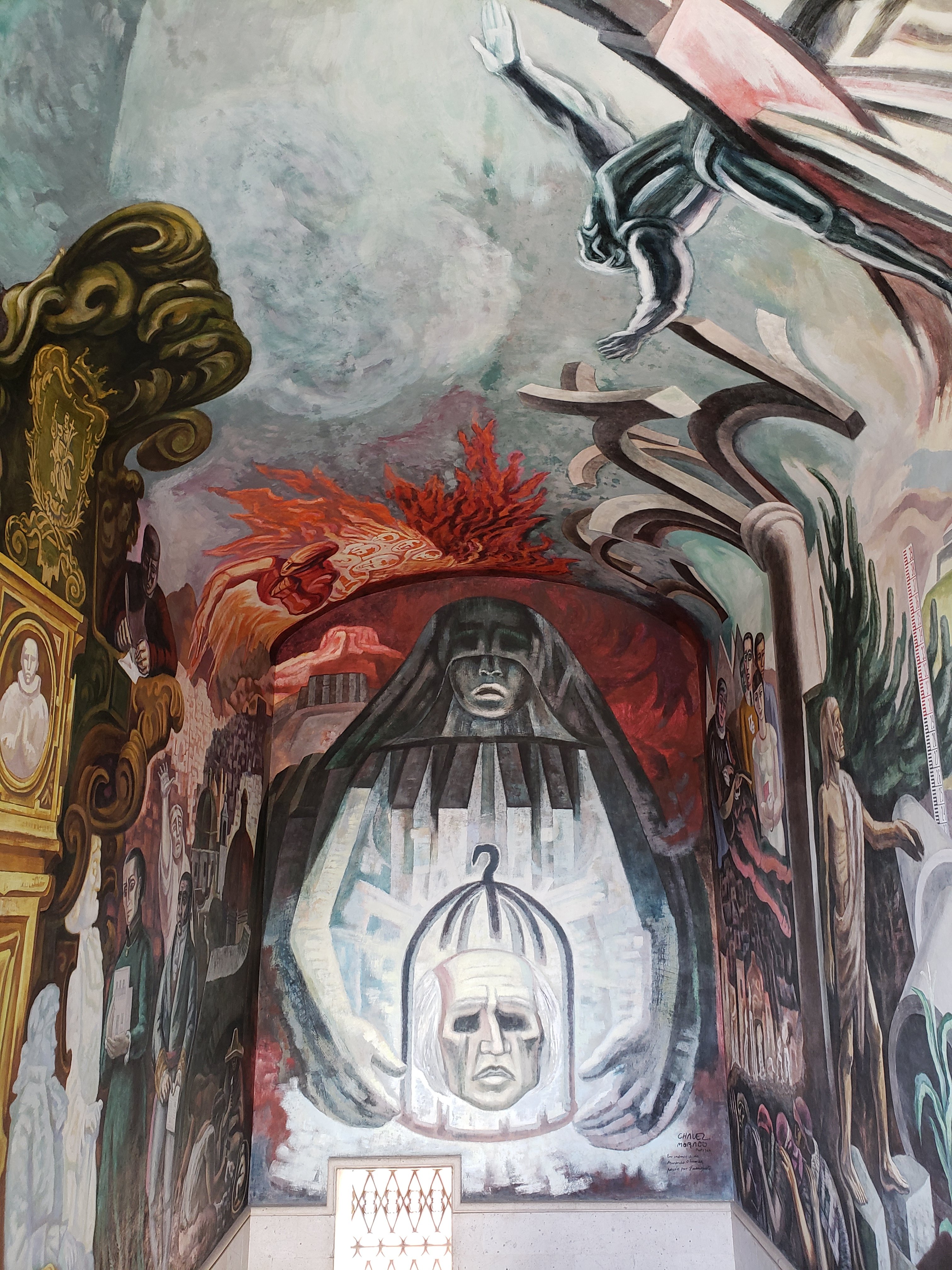 After coffee and a pastry relaxing in Plaza San Fernando, we visited the Mercado Hidalgo and had lunch near by at a taqueria. Then we visited the local history museum, Museo Alhondiga de Granaditas, where we learned about the early civilizations of the area and the revolution and fight for Mexican independence