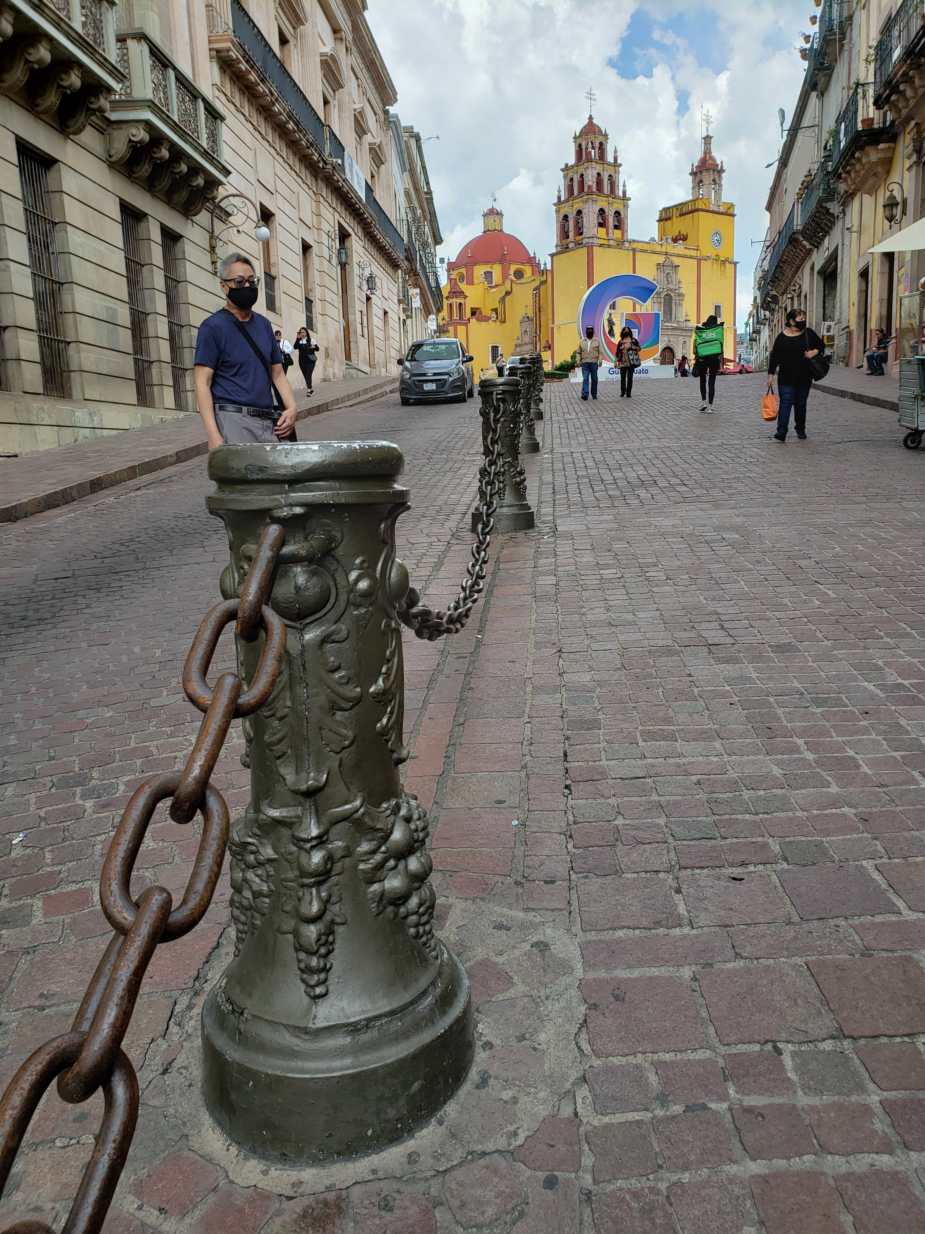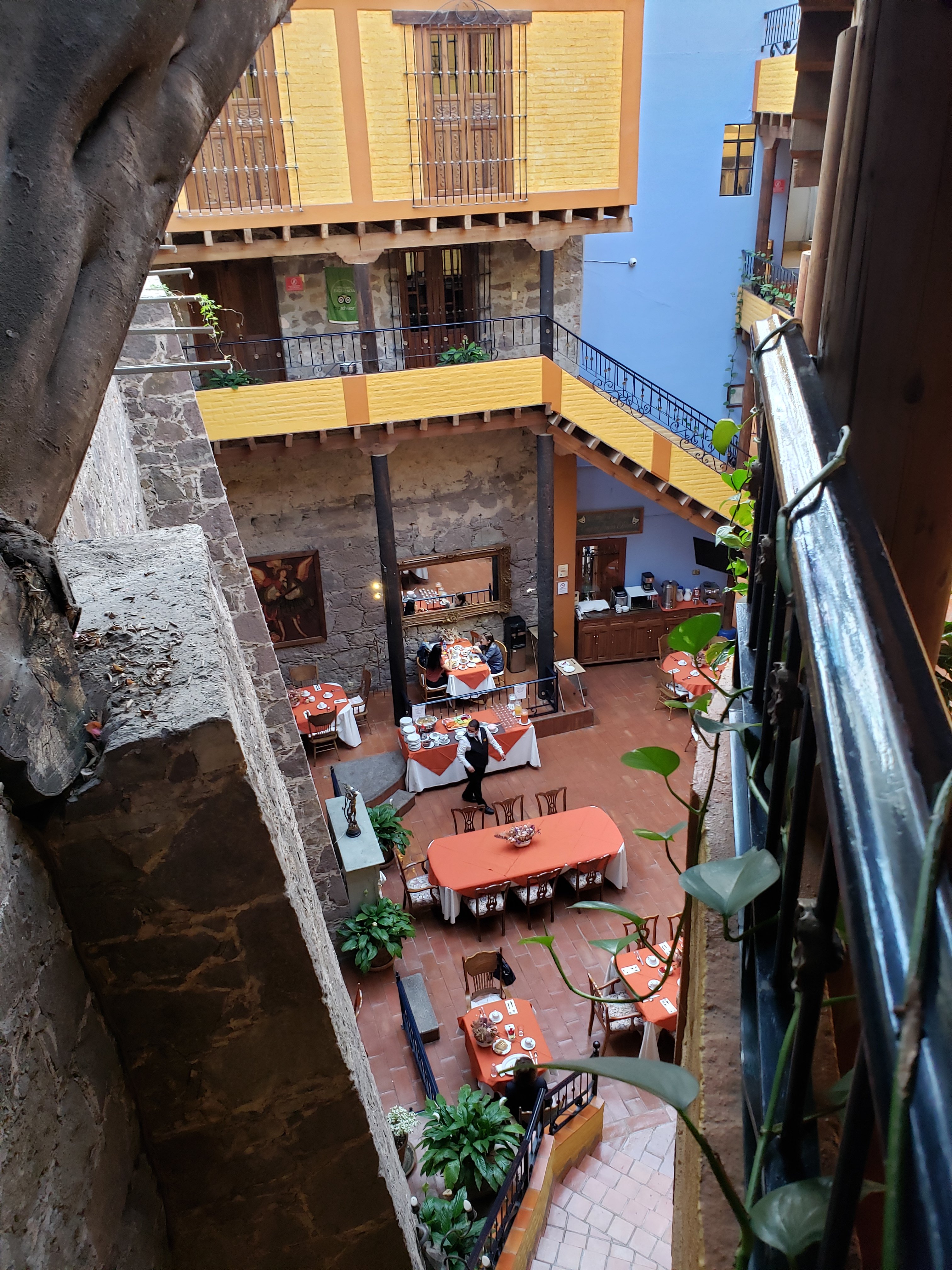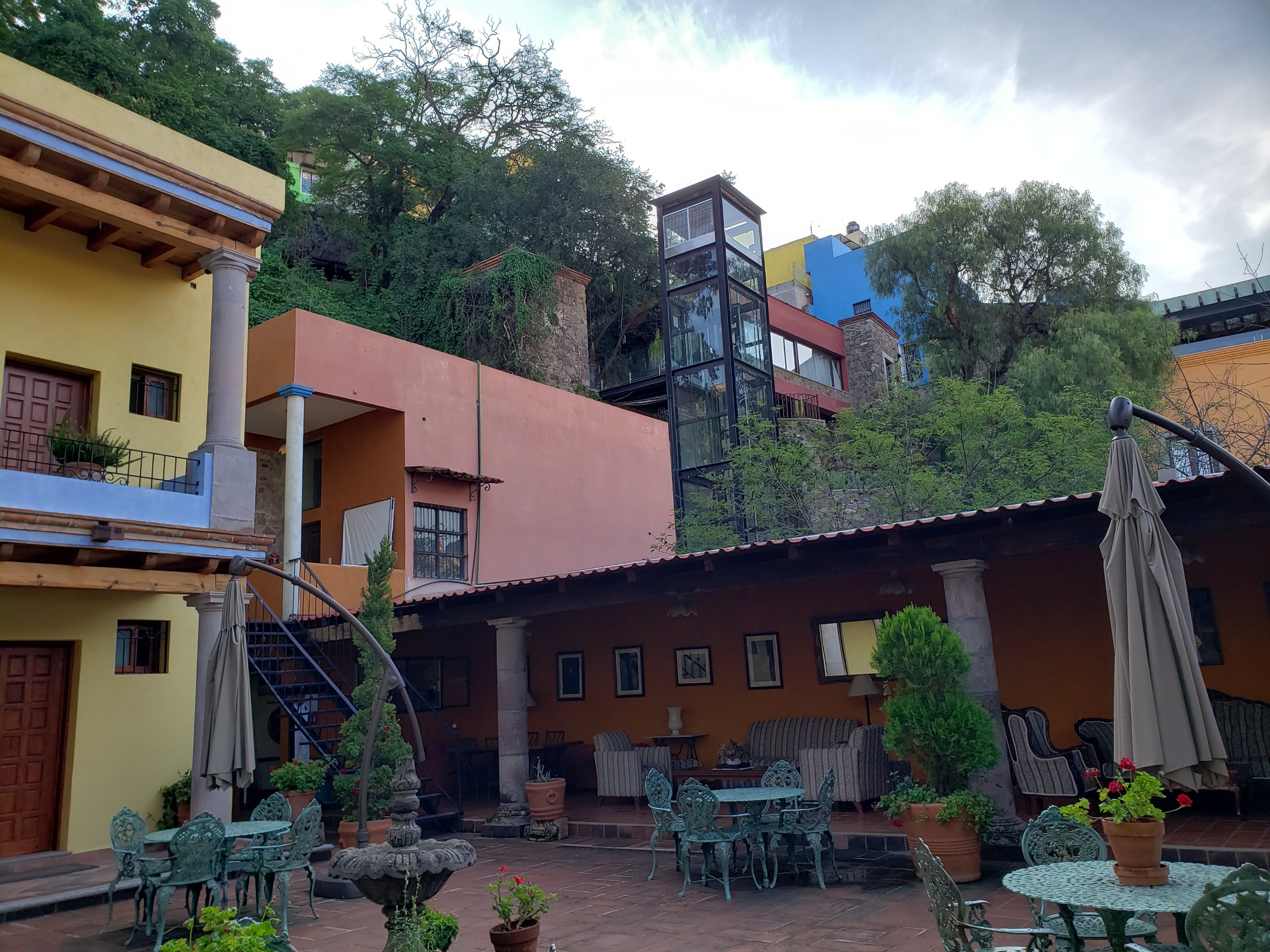 This trip for me has been a trial, so far! The guy next to me on the 1st flight spilled coffee on his seat and I didn’t know!…..when I moved out of my seat, I rubbed on his seat and got all the years of airplane dirt, dissolved in coffee, all over my white slacks! ….. ok changed to shorts for the next flight. It was late so we just went to bed in the hotel near the airport. In the AM , we got a “TAXI” ( using the term lightly) for the 46 minute drive to Guanajuato. It was a lady driver, and she took a turn ( i think to avoid the toll) and we got a short tour of a village…. and the dirt trails around the guanajuato. I tried my camera and found it was acting up terribly, so I lost the pictures but picture puddles totally covering the dirt road! Then a rushing stream we were supposed to ford! NOT! luckily a truck came thru from the other direction and told her where to go to get back to the toll road! Hour and 45 minutes for the trip! BUT we made it and our hotel is lovely.