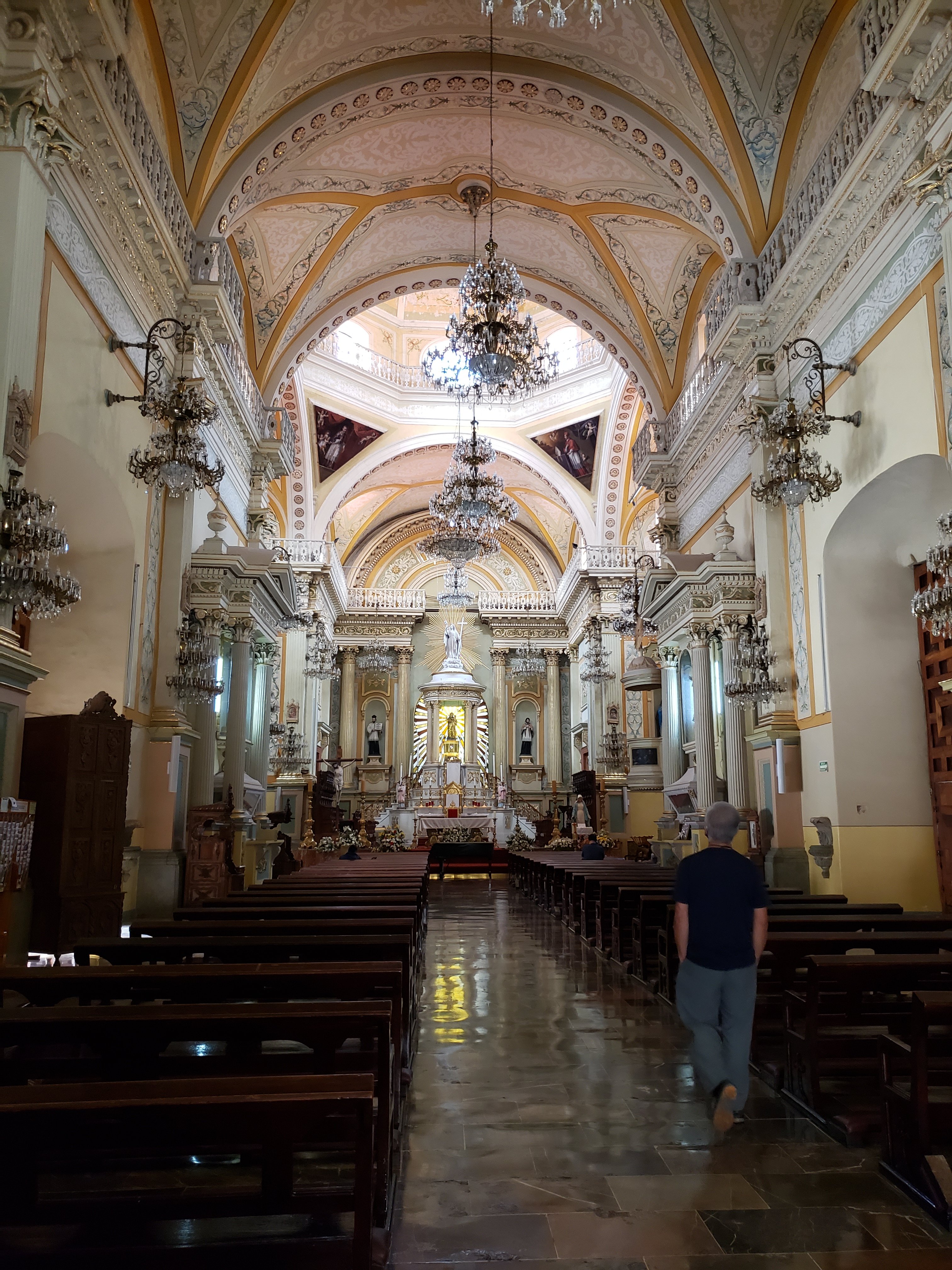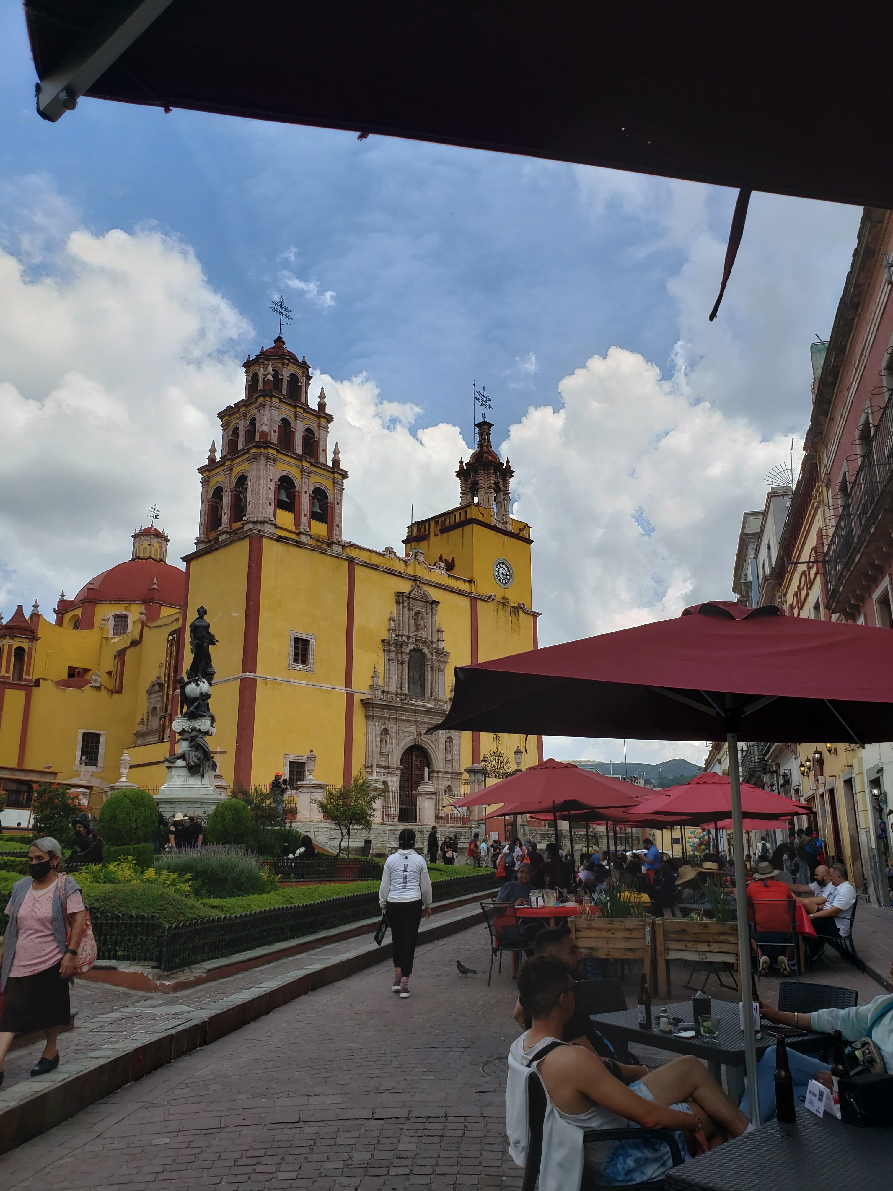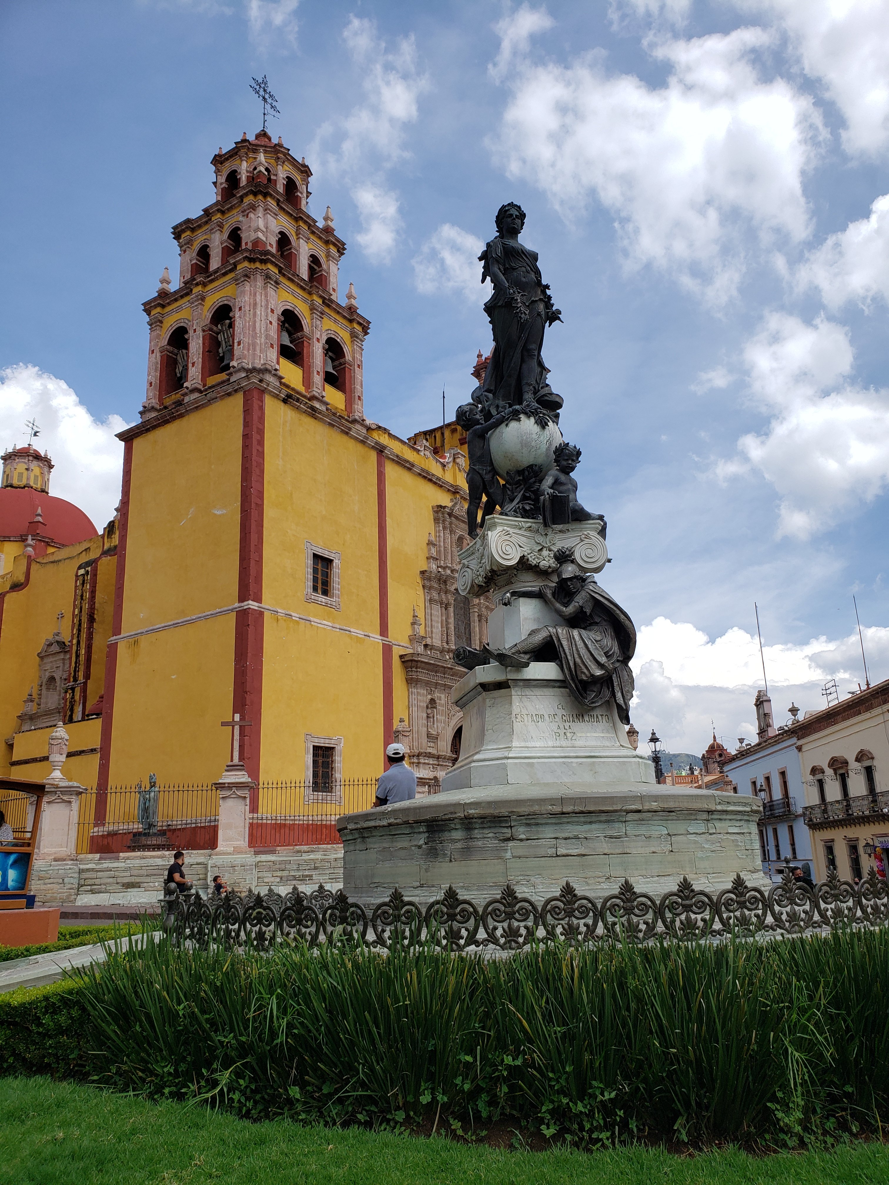 This trip for me has been a trial, so far! The guy next to me on the 1st flight spilled coffee on his seat and I didn’t know!…..when I moved out of my seat, I rubbed on his seat and got all the years of airplane dirt, dissolved in coffee, all over my white slacks! ….. ok changed to shorts for the next flight. It was late so we just went to bed in the hotel near the airport. In the AM , we got a “TAXI” ( using the term lightly) for the 46 minute drive to Guanajuato. It was a lady driver, and she took a turn ( i think to avoid the toll) and we got a short tour of a village…. and the dirt trails around the guanajuato. I tried my camera and found it was acting up terribly, so I lost the pictures but picture puddles totally covering the dirt road! Then a rushing stream we were supposed to ford! NOT! luckily a truck came thru from the other direction and told her where to go to get back to the toll road! Hour and 45 minutes for the trip! BUT we made it and our hotel is lovely.