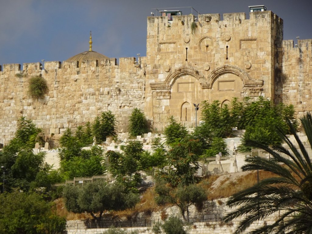 We also see the Grey Dome to the left of the Dome, the Church of the Holy Sepulchre. We visit there tomorrow. The Eastern or Golden Gate, the Gate the Lord will return thru was sealed by the Sultan Suliman the Magnificent in the 13th century, to prevent the Lord’s return. ( he didn’t know much about the Lord’s return, obviously, if he thought THAT would keep Him from returning) .