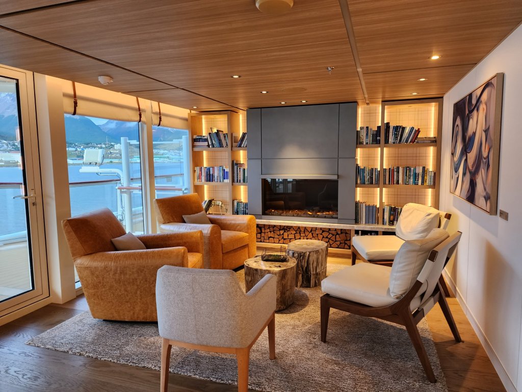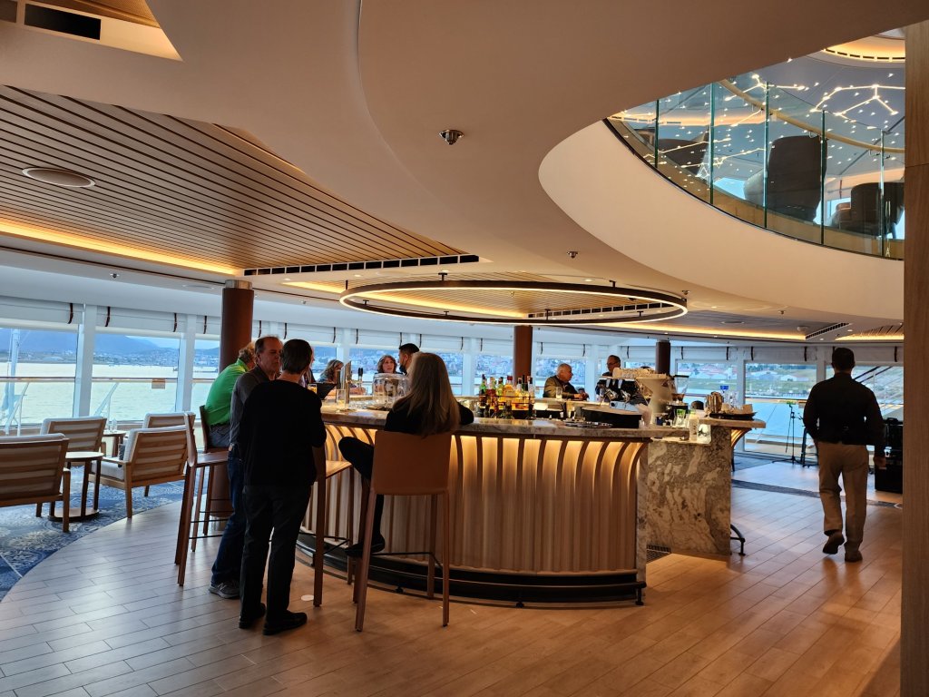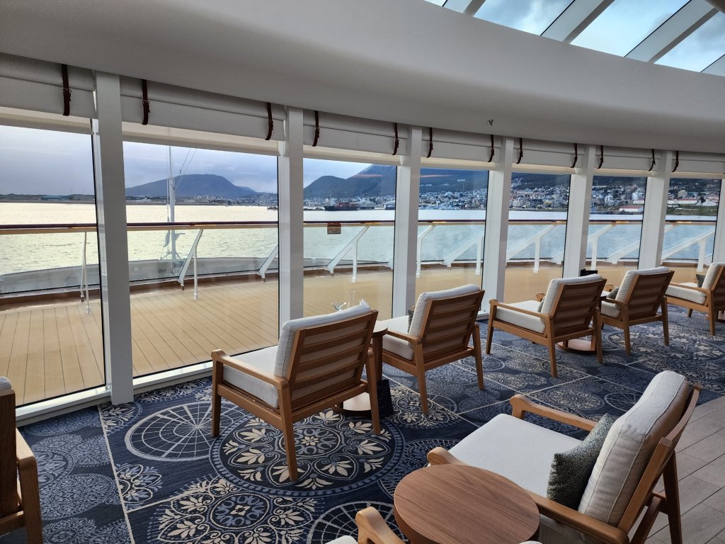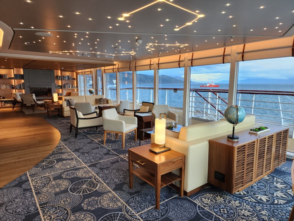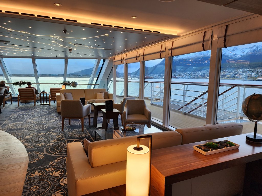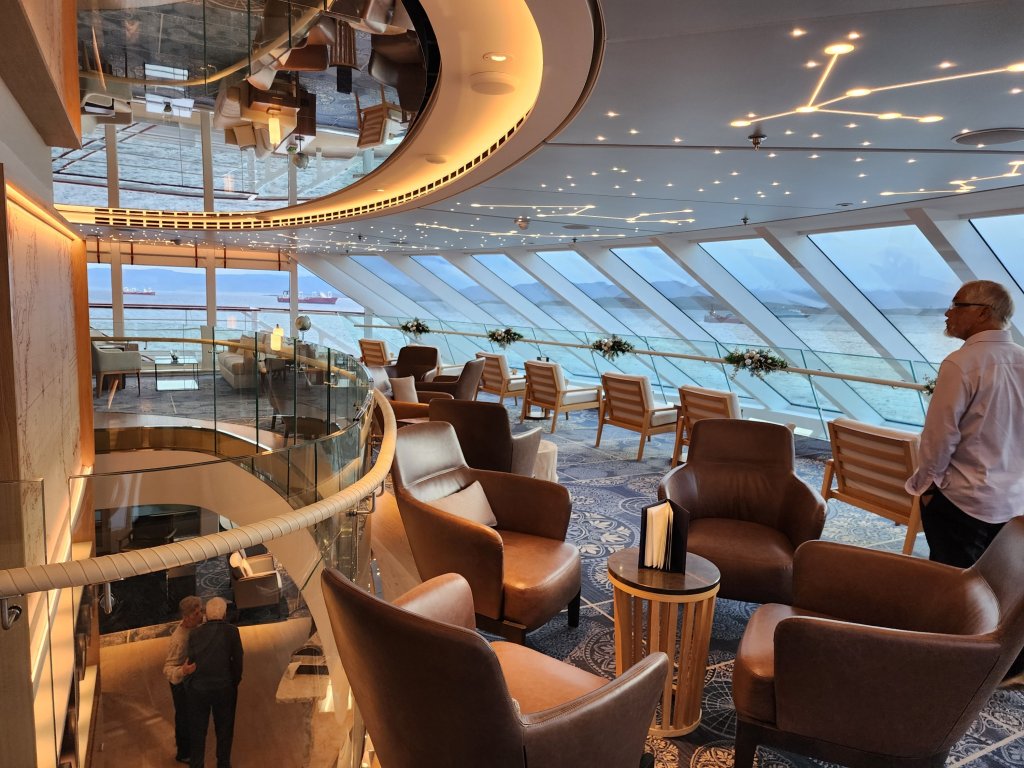 There are many lovely spots and I will add pictures as we discover them. First is the Explorers Lounge, 2 decks at the bow