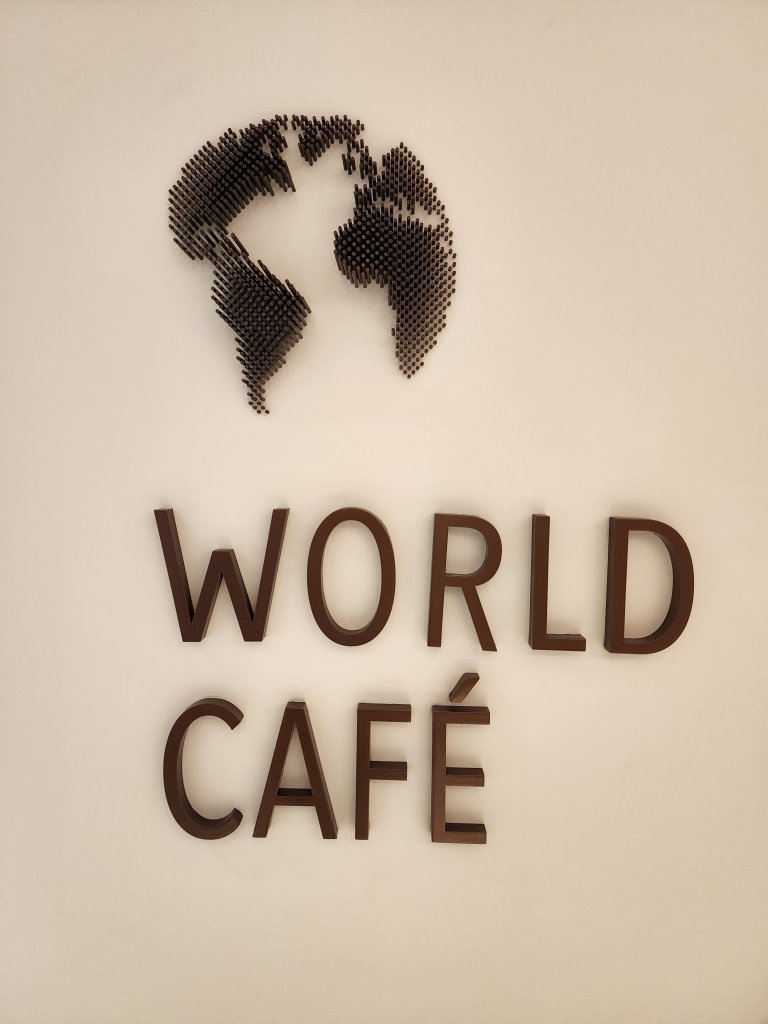 Most often we grab breakfast and lunch, sometimes dinner here in the World Cafe