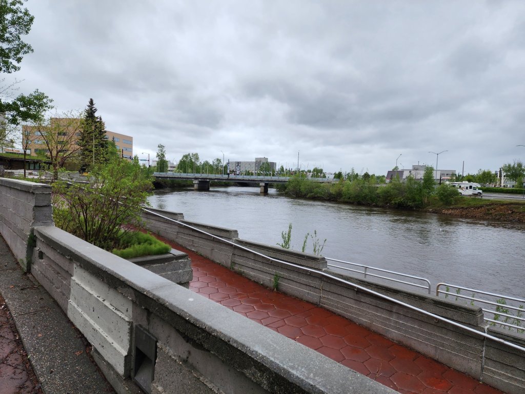 Our drive up to Fairbanks was rainy, so no good pictures. We walked a bit around the hotel downtown, but that’s it. In fact, the rain has raised the level of the river, so the guys have had a change of plans…. they are going on a wading fishing trip to the delta where the water isn’t flowing over flood stage! Hope their foot warmers work! Water is 38 degrees! But the fishing should be better!