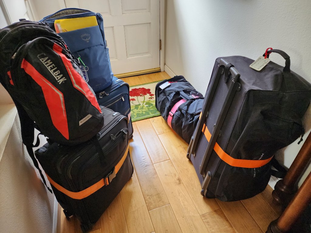 We are ready! Out the door in an hour! This isn’t our usual amount of luggage, we usual only being the bags on the left! but we are excited to leave half of it, the large duffles, in Africa!
