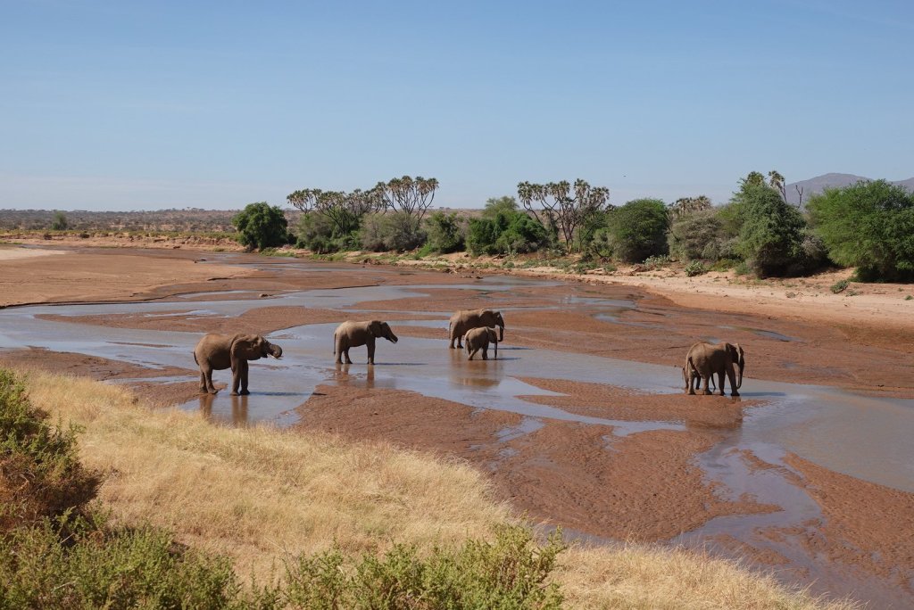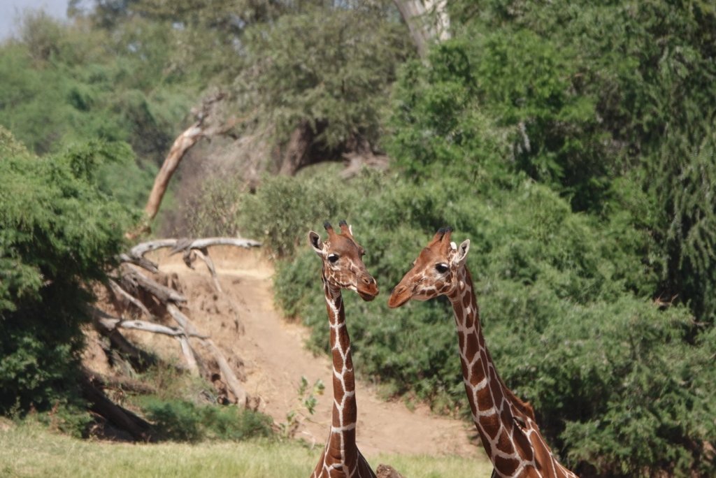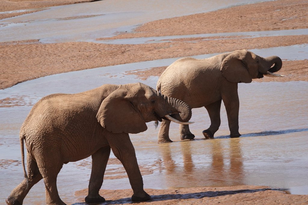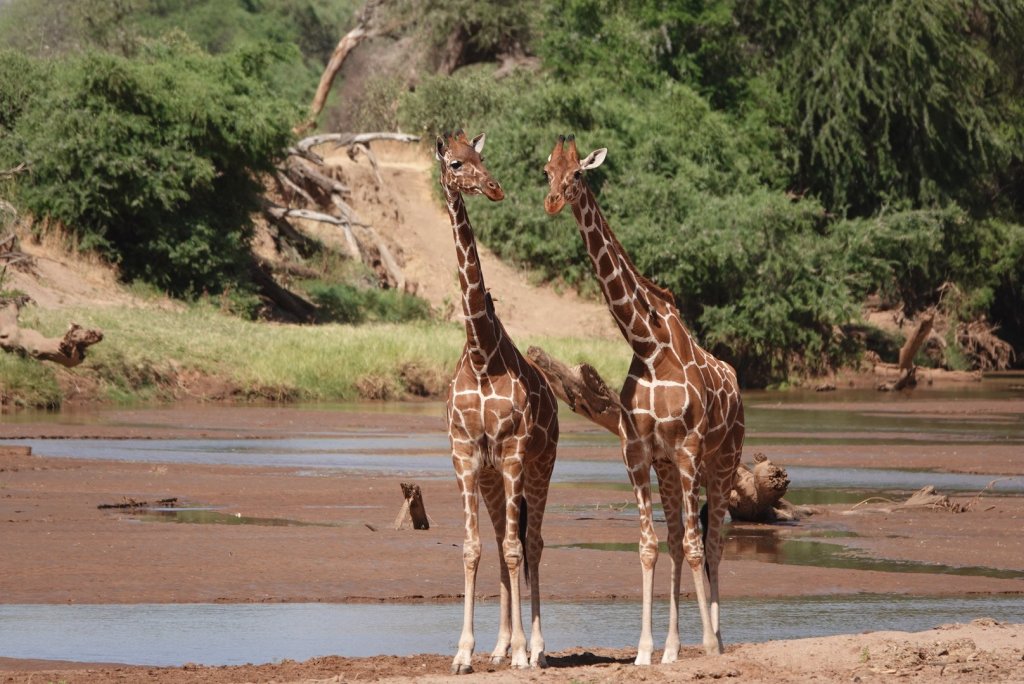 We saw a group of elephants and 2 giraffe drinking at the river and it was wonderful to watch then a while