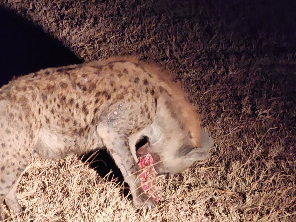 Tonight, we are took a night time safari drive. We missed the lions, it seems they had a kill yesterday and we sleeping it off! But we did see hyenas and jackets finishing off the remains of a Zebra