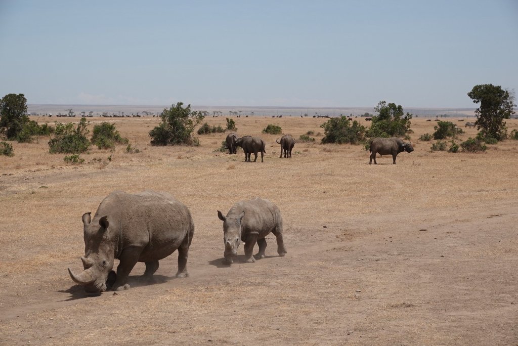 Known for the large population of Southern white Rhino and Cape Buffalo, we saw both in one scene as soon as we entered Olpejeta. There are still many Grants Gazelle impala, and antelop, plus some new ones we haven’t seen before here. The Zebra here are Common Zebra.
