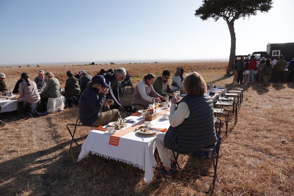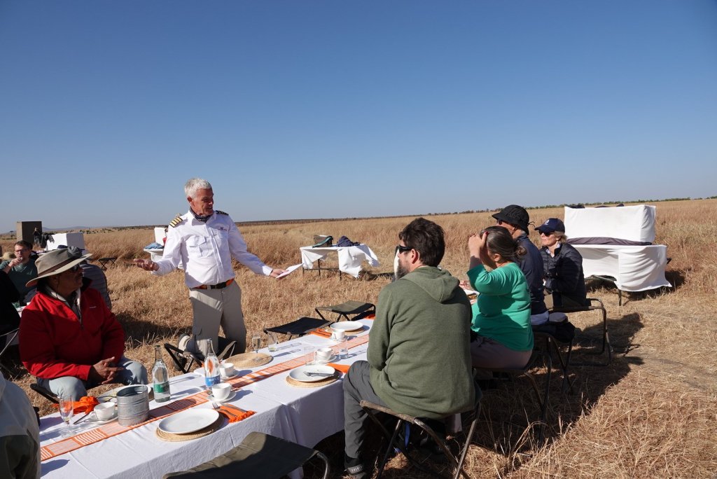 After skimming the plains and flying high, we landed, celebrated surviving, thanked the team, and enjoyed a champagne bush breakfast