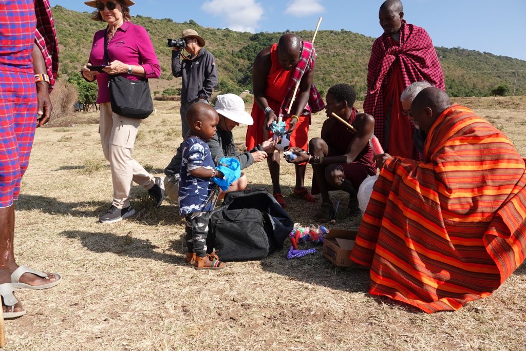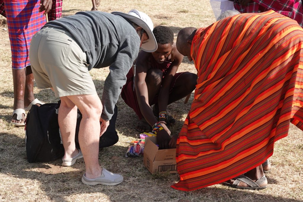 We brought some gifts for the children and some colored pencils and pens for the school and a small gift for the women.