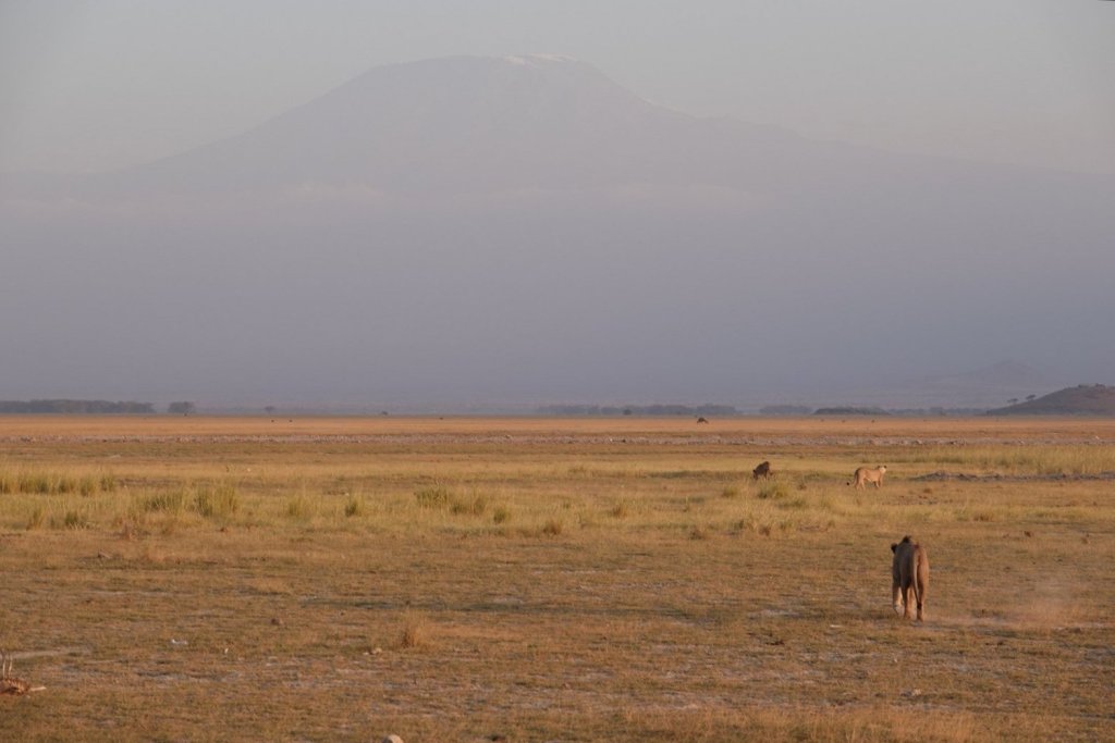 But the big male lion walking away, in the sunset light, toward Kilimonjaro was the best end to our safari drive ever!