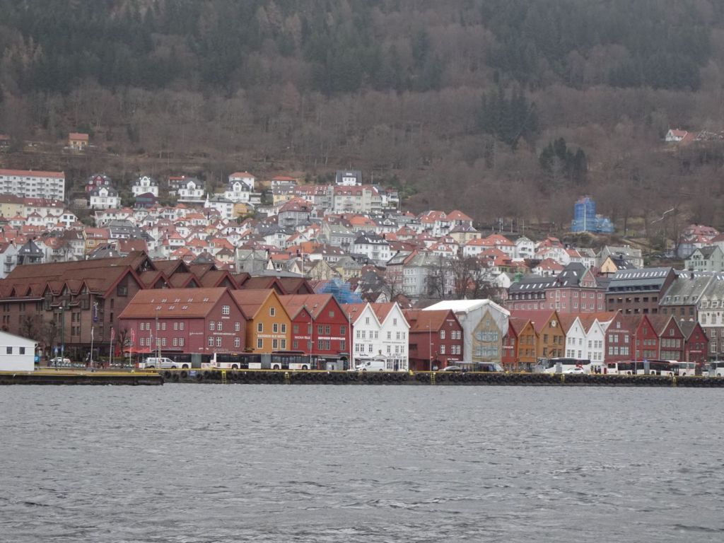 Our cruise is beginning today. Yesterday we arrived in Bergen and joined the ship overnight here. Today we were able to do a short tour of Bergen, before we set sail. Bergen Harbor, one of the primary Hanseatic League cities of the 14th and 15th centuries, still exhibits the wooden houses of that time along the harbor.