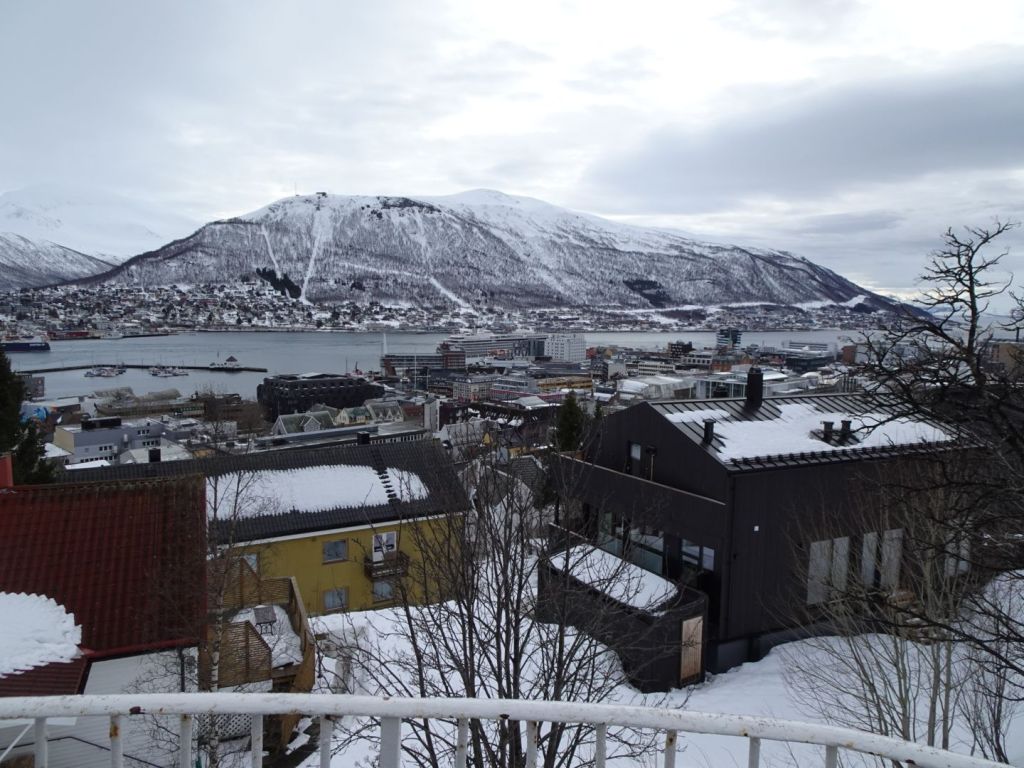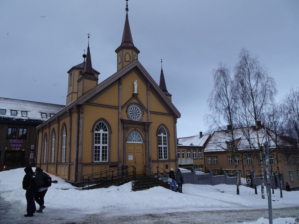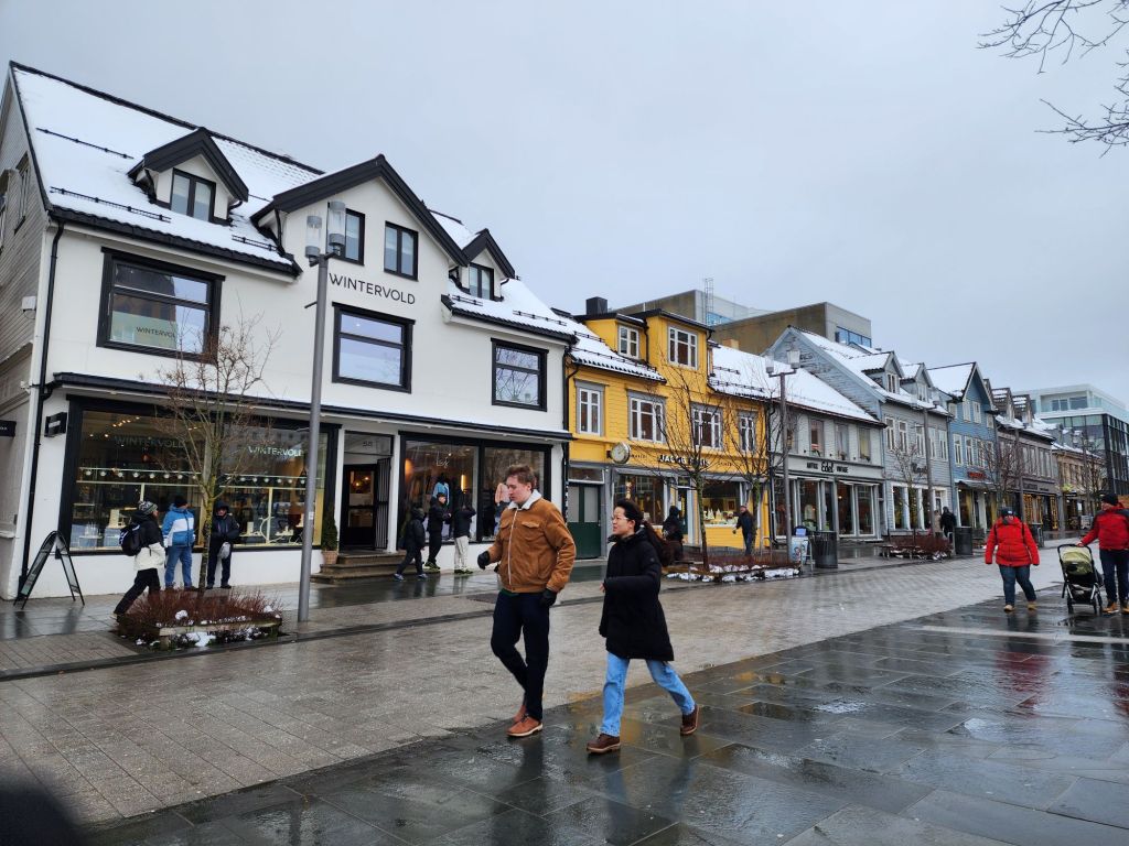 Our first day in Tromso was raining snow…. slush in the making, with temperatures just above freezing. We scheduled a northern lights chase for later and then did a walking tour of the old town. Tromso was incorporated as a town in the 1790s, and many of the 200+ year old buildings remain since the city escaped damage by the Germans in WWII by just a few minutes. They were advancing toward they city but were turned back by the allies. They had brought the damaged Tirpitz, the last of Hitler’s prize battle ships, to Tromso where the Allies sunk it.. Scenes from the city walk