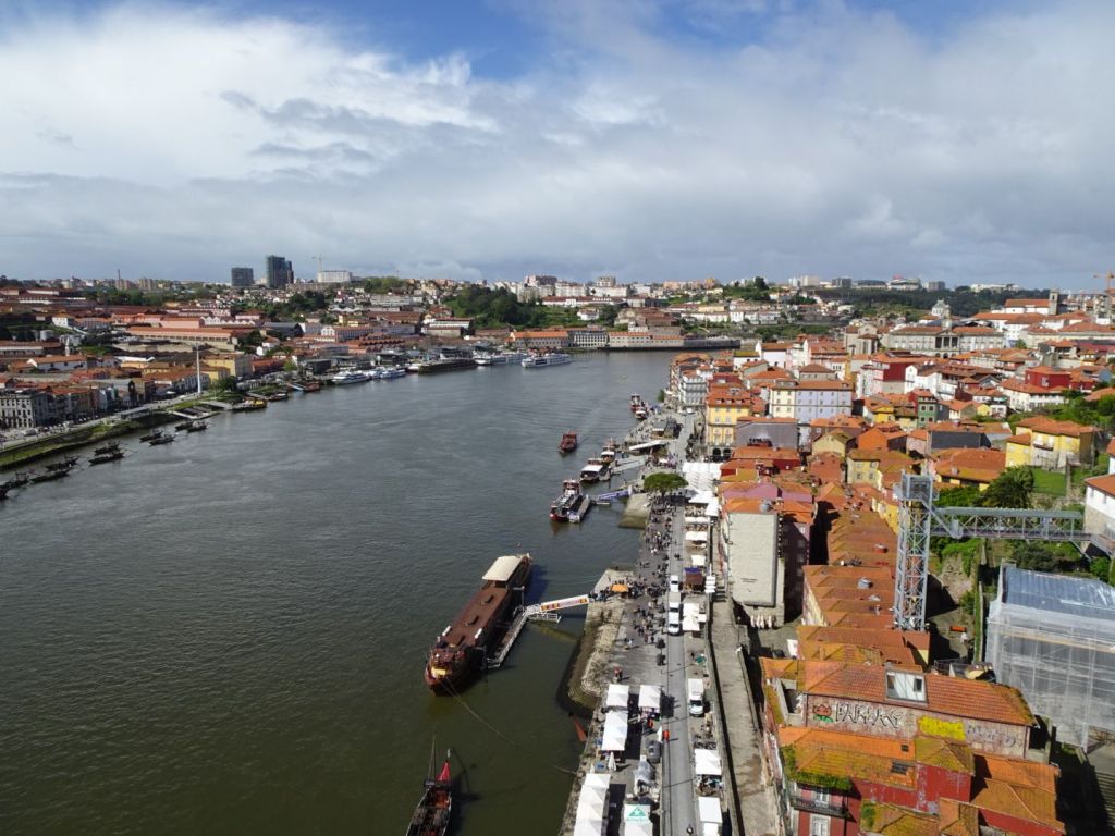 Our last full day in Portugal! We were at leisure to walk the city a bit, nothing particular to visit, but the historic center. The weather is A bit chilly and only a little wind, but on and off rain as we walk out onto the top of the Pont Luis bridge looking down onto the Douro River.