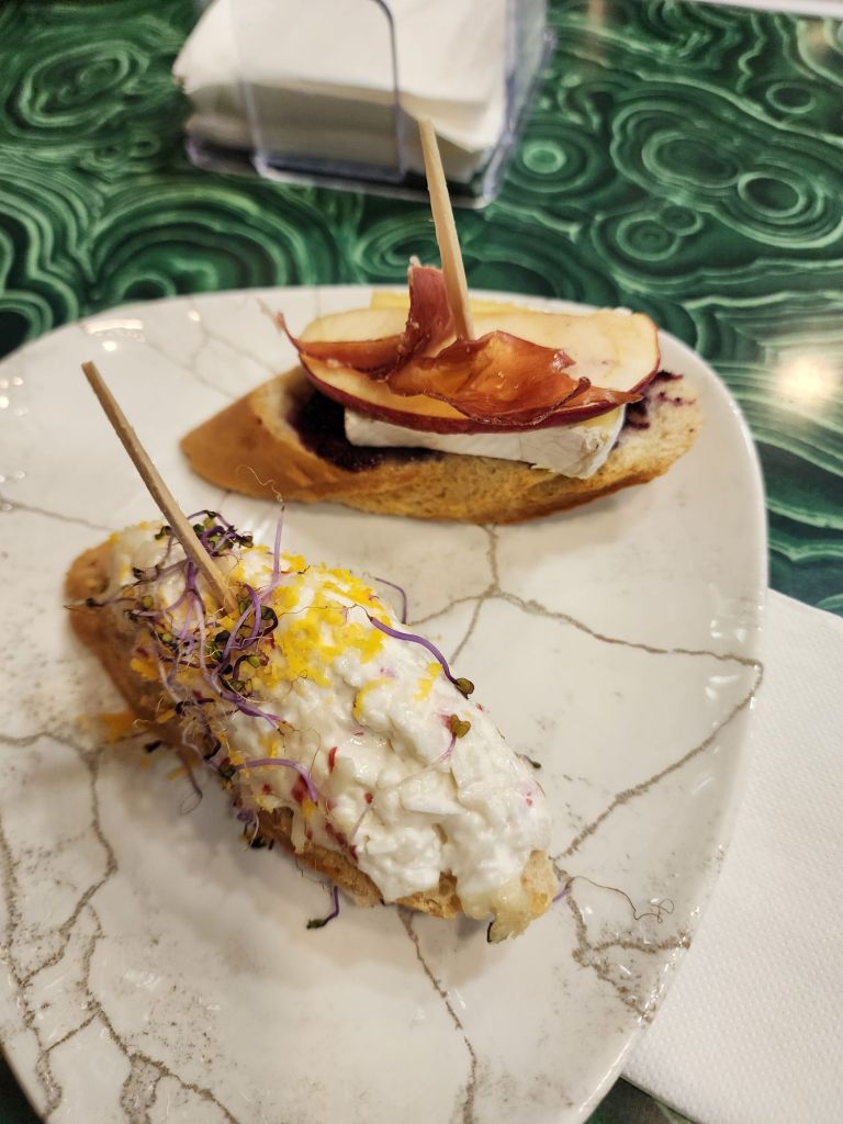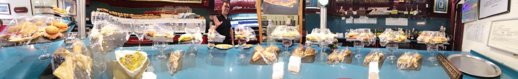 In Bilbao for lunch after our visit to the Guggenheim, we had our first pintxos lunch. Like tapas, these are small dishes, served differently on different places. Here, we just pointed out our choice and they count toothpicks afterward to figure your charge! They were delicious! Lunch for 4 people with sparking water or sodas was only 36€ !