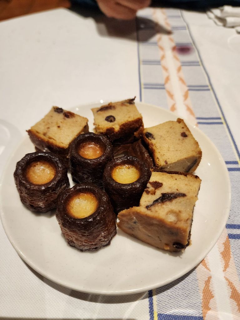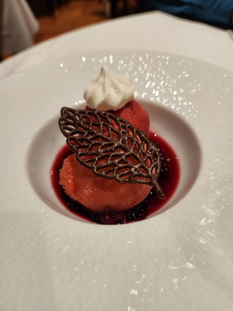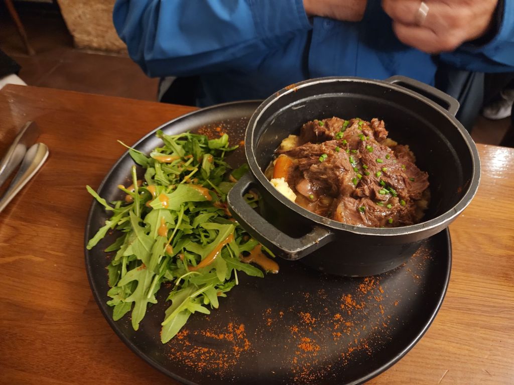 The weather didn’t last, so we went to dinner in the rain. We had a typical French meal of the day, One each, starter, main and dessert, and 4 options to choose from in each category.
