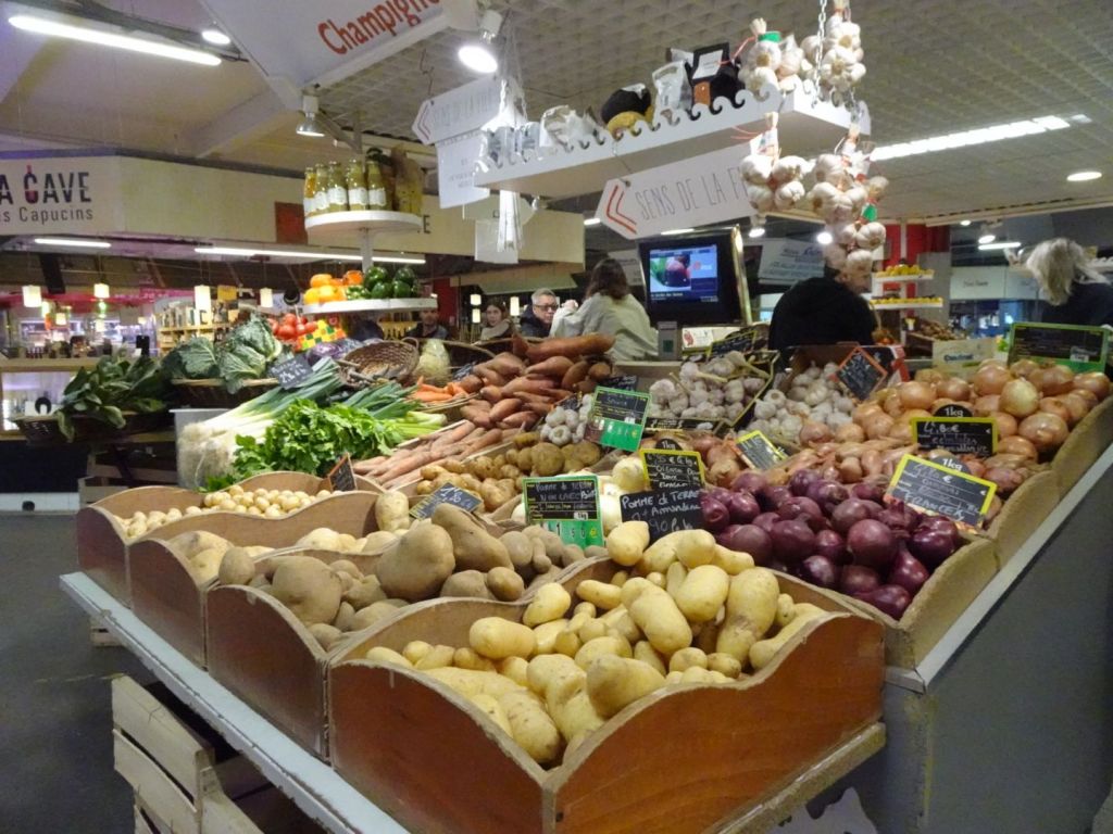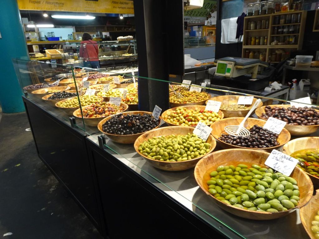 Our full day in Bordeaux has crazy weather again, sunny and beautiful one minute and rain showers the next, for 30 seconds! But it didn’t stop our exploration. The tram here is quick, easy, cheap, efficient, and took us almost everywhere. First to the Marchè de Capuchin (market)