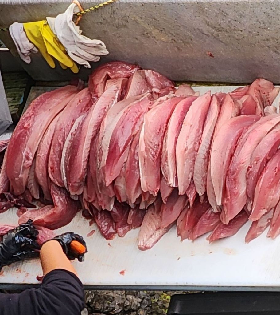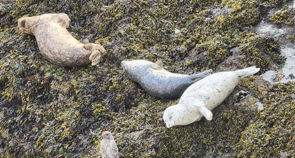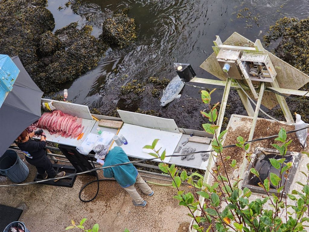 Inside the harbor, we saw a fisherman fileting his catch….? Maybe salmon? And his work also cough the eye of a local harbor seal!