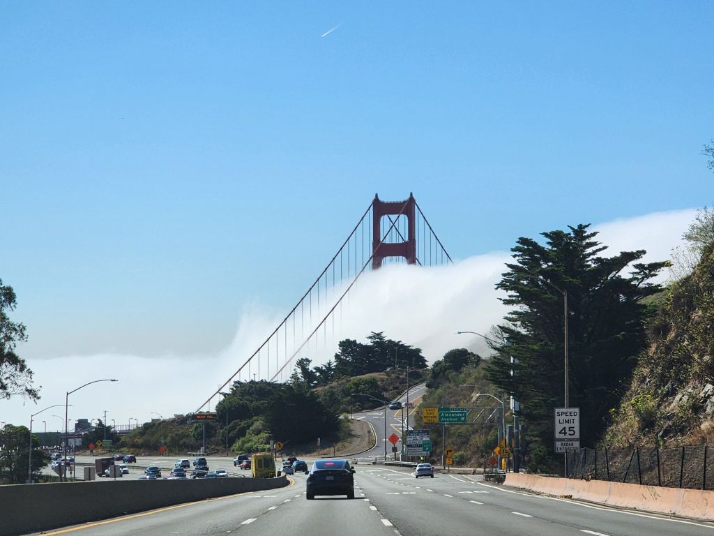 Overnight in Windsor,Β near Santa Rosa, at another of our timeshares, then on to Solvang.Β Β We got to San Francisco in time to see an amazing site