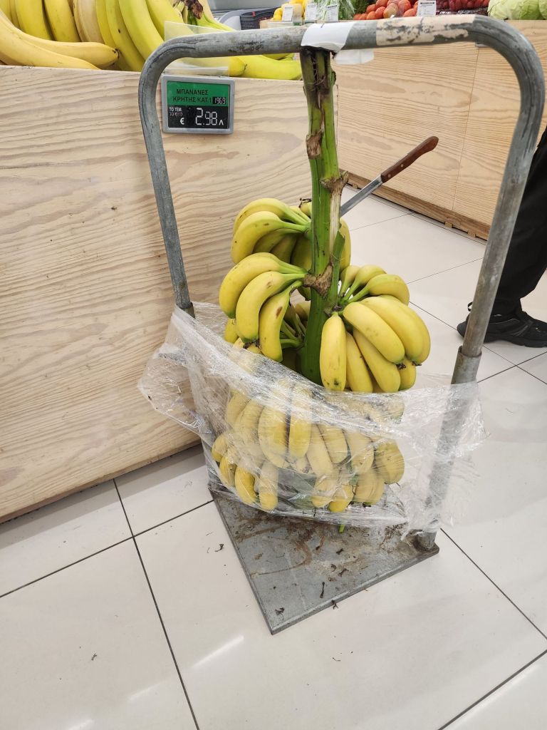 A stop to buy some fruit. Want a bunch of banana? Chop off your own from the stalk!
