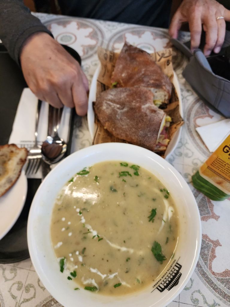 Then we decided to walk up to the city center for lunch. We stopped again at the Valletta market. Soup and sandwich, Maltese street food style