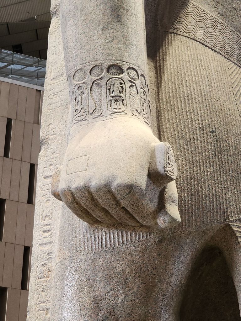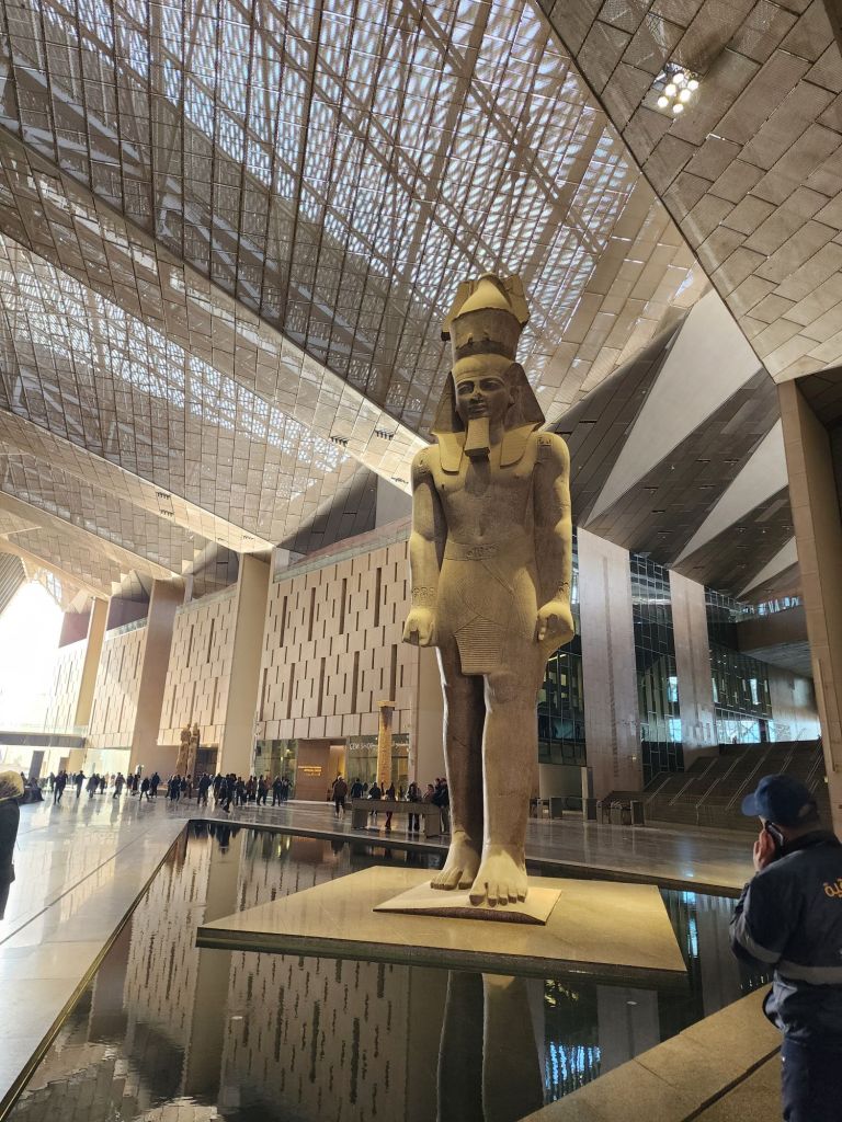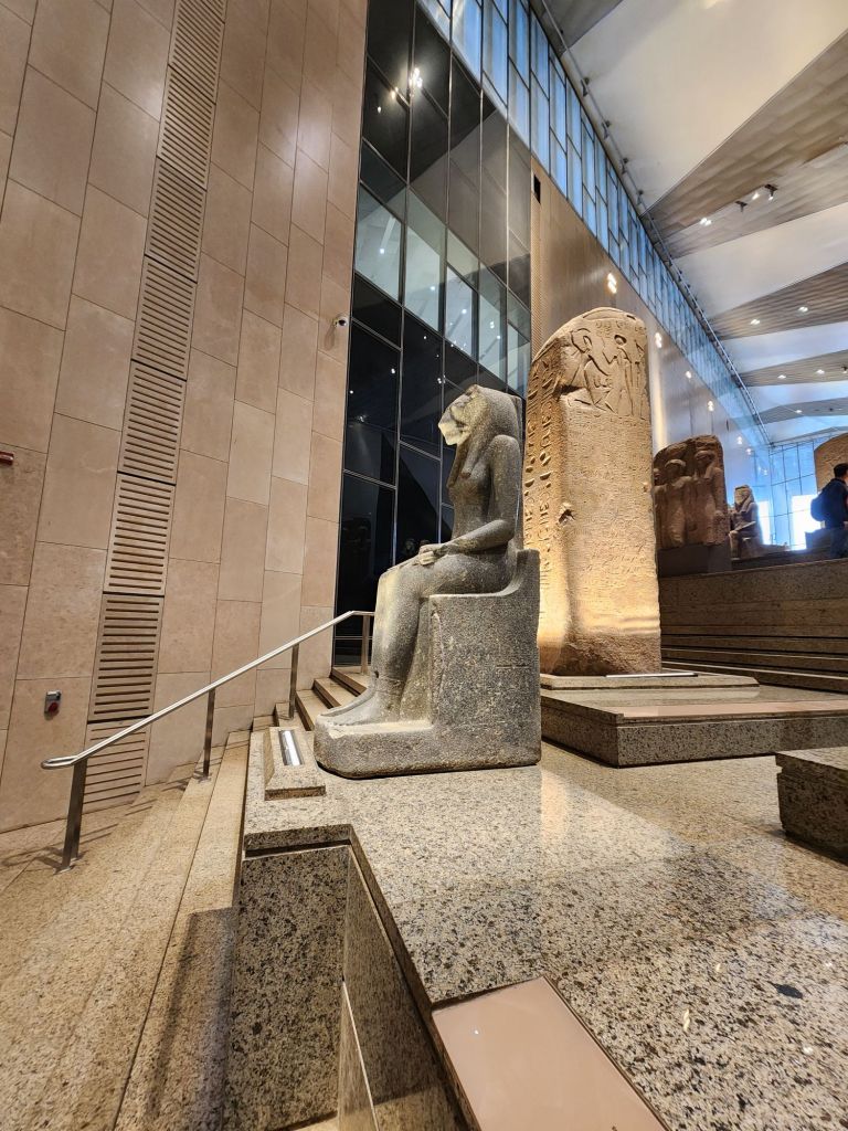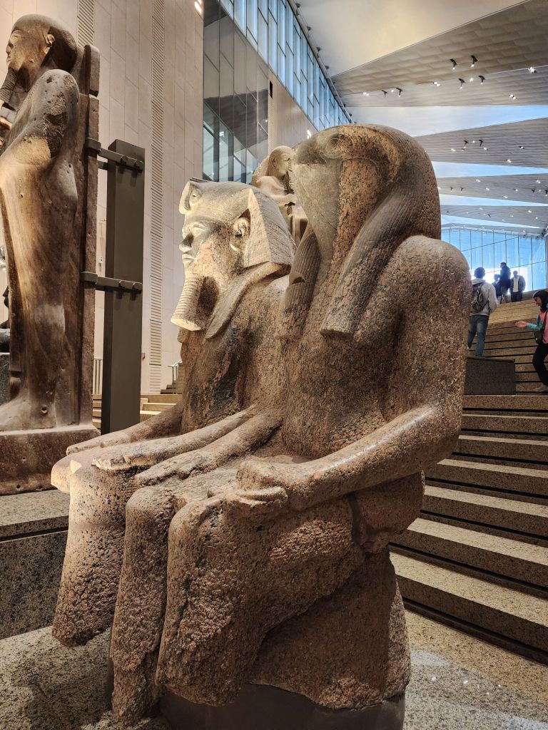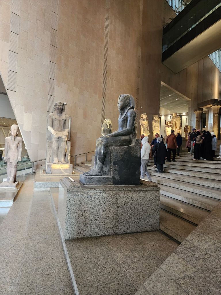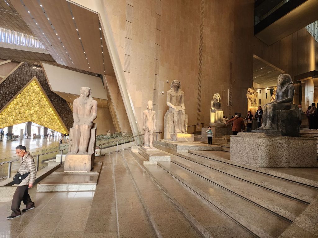 Inside the open atrium stands Ramses II, the spectacular statue, as well as sweeping stairs with statues