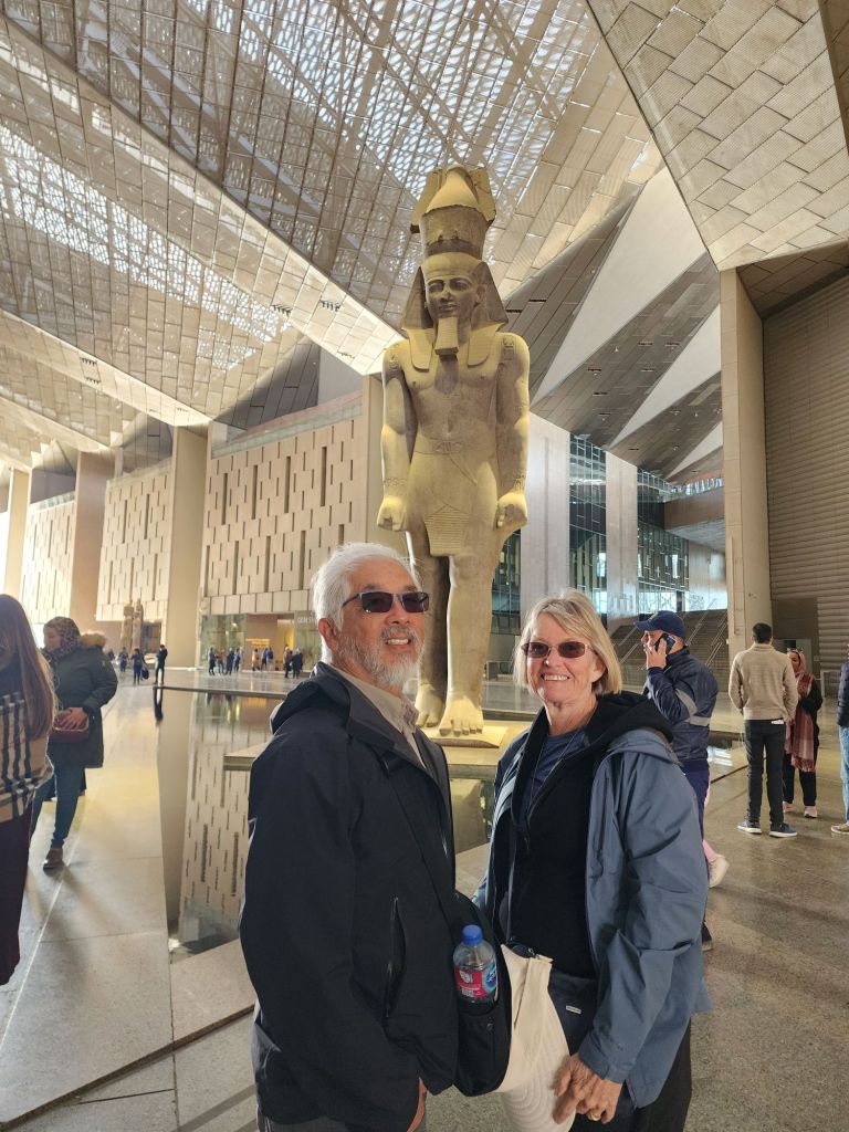 We then had a couple hours to visit the new Grand Egyptian Museum, over 20 years in the planning and building. It is spectacular architecture and will house their Amazing collection eventually with a Grand opening July 3. Right now, only a portion is filled but there is a “soft opening” now.