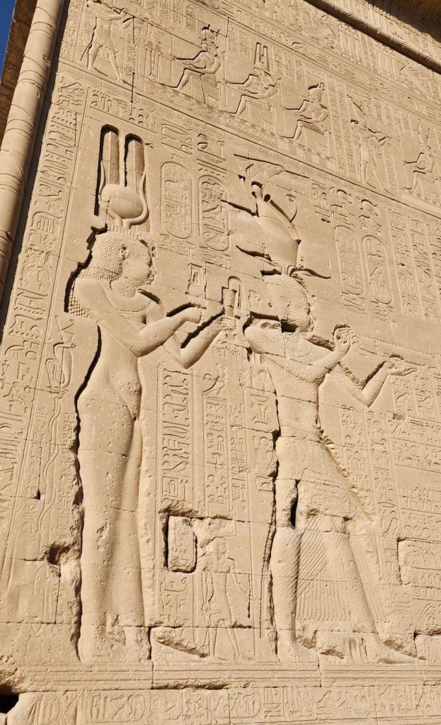 This is 1 temple with a relief of Cleopatra and her son Ptolomy the 15th, the last eFamily dynasty of the Egyptian kingdom