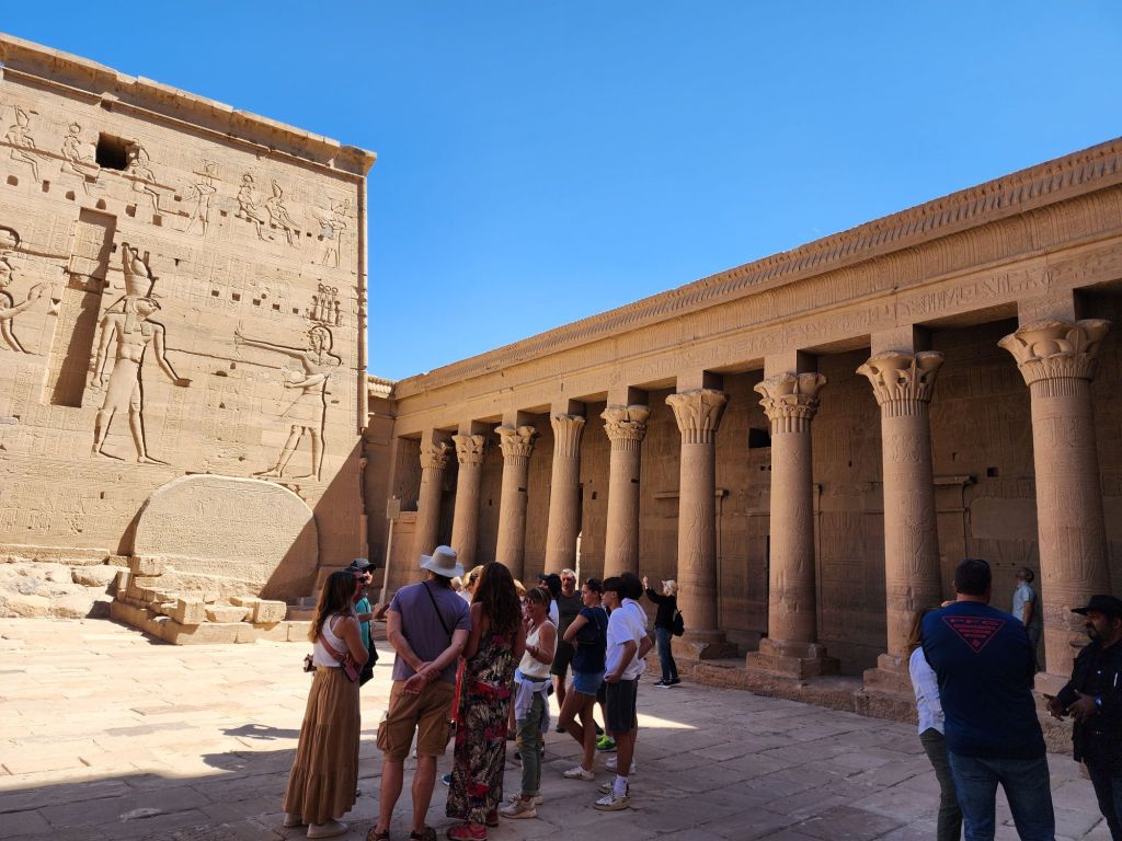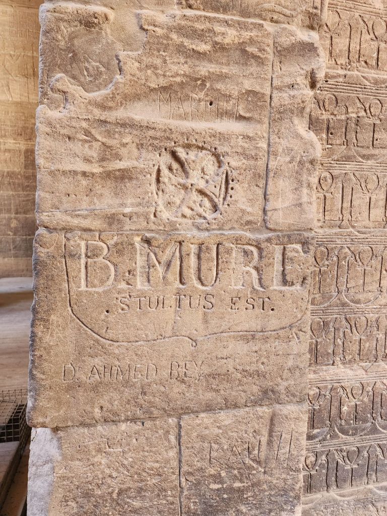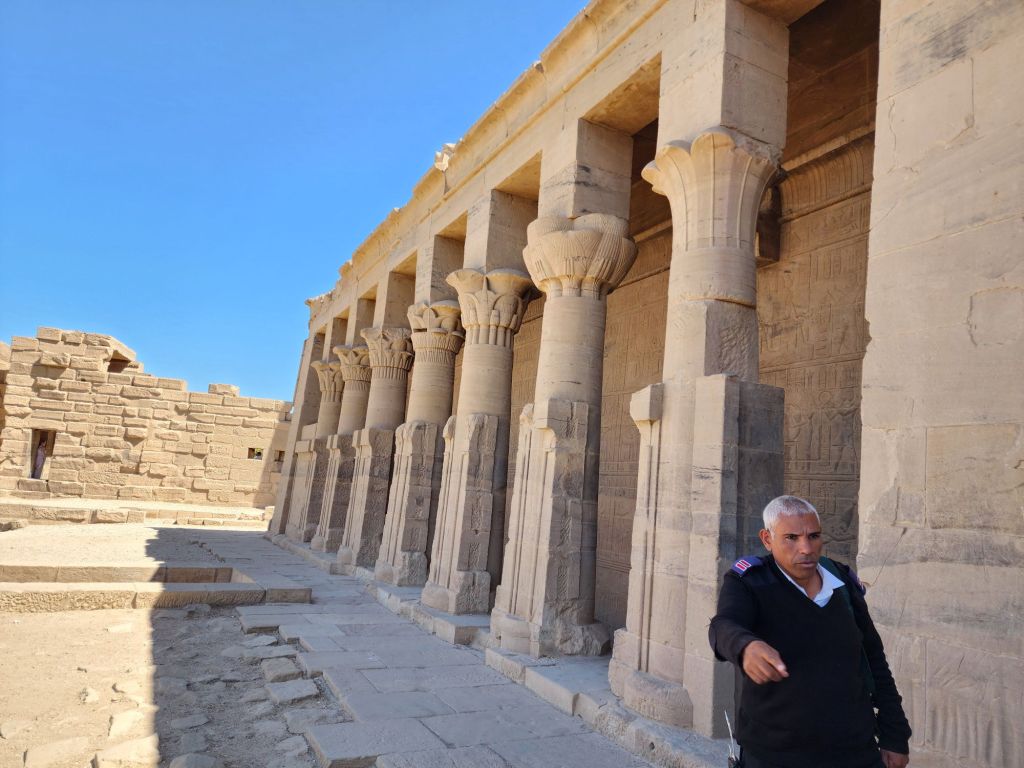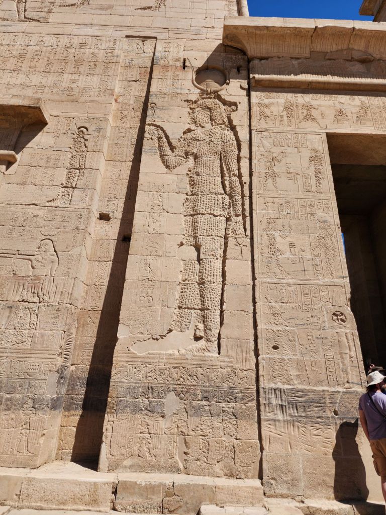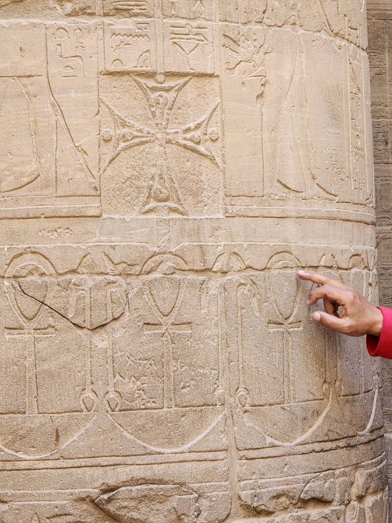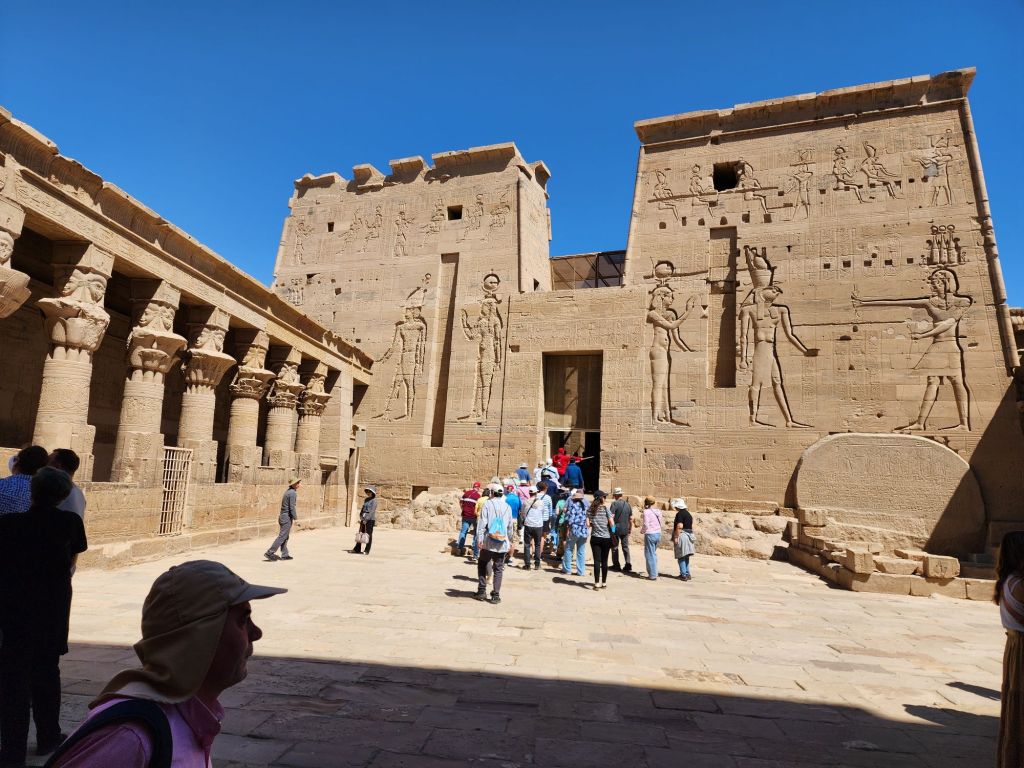 It was interesting to see 1 more temple site saved from the Nile flooding of the old dam built in 1902. This site was raised in 1972 to 1980. 40,000 blocks of stone were cut and placed on another higher island in the Nile. Philae Temple was later used as a church, so you can see cruises inside