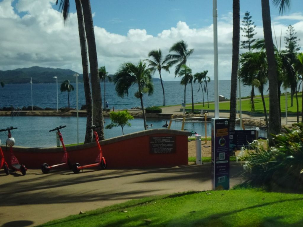 On our stop in Townsville we visited their museum and traveled along the strand, along the beach. A small section is netted to keep swimmers safe from stinging jellies, and predators like crocodiles.