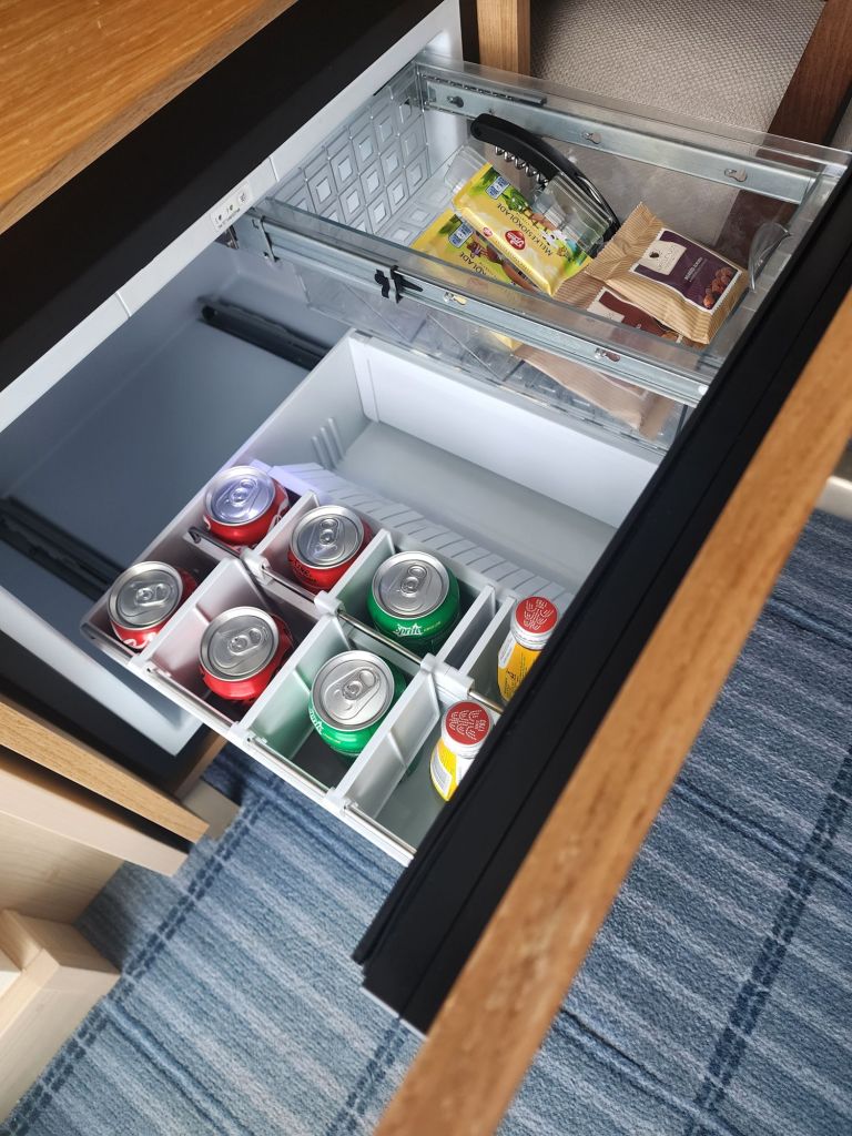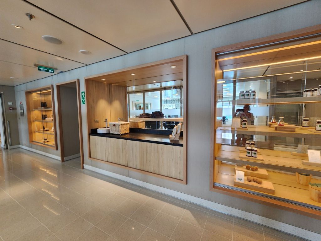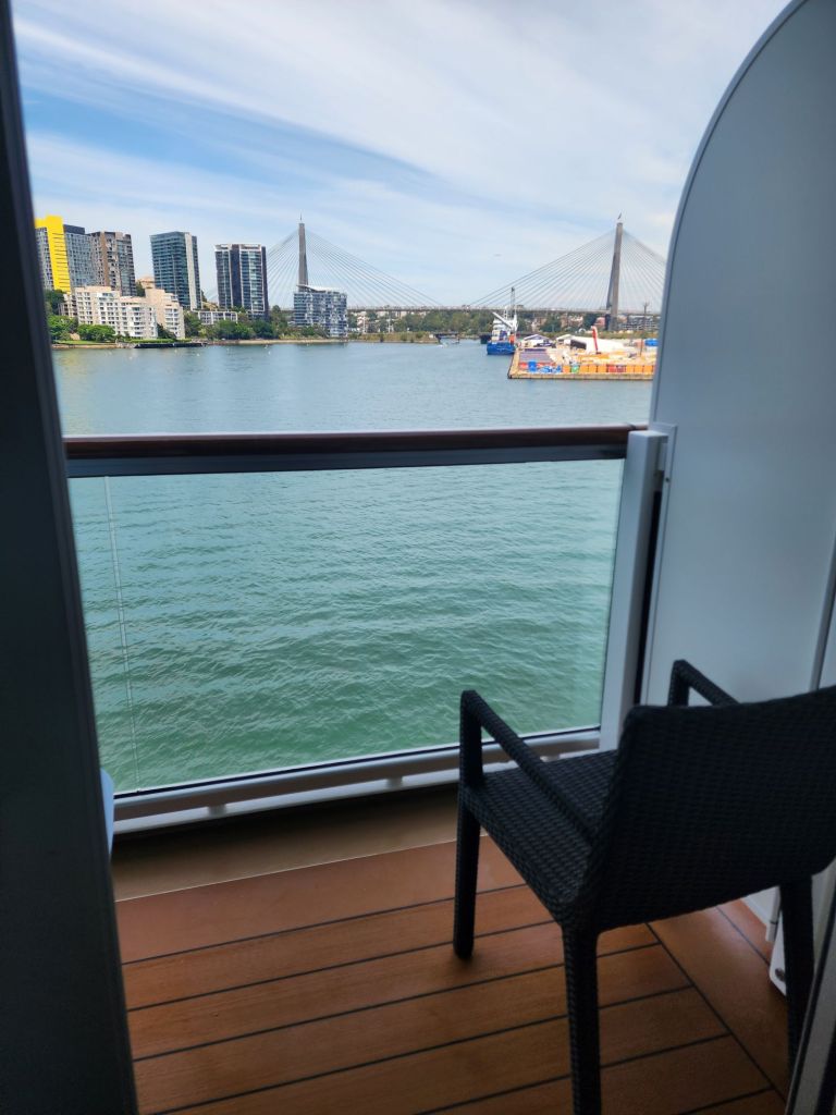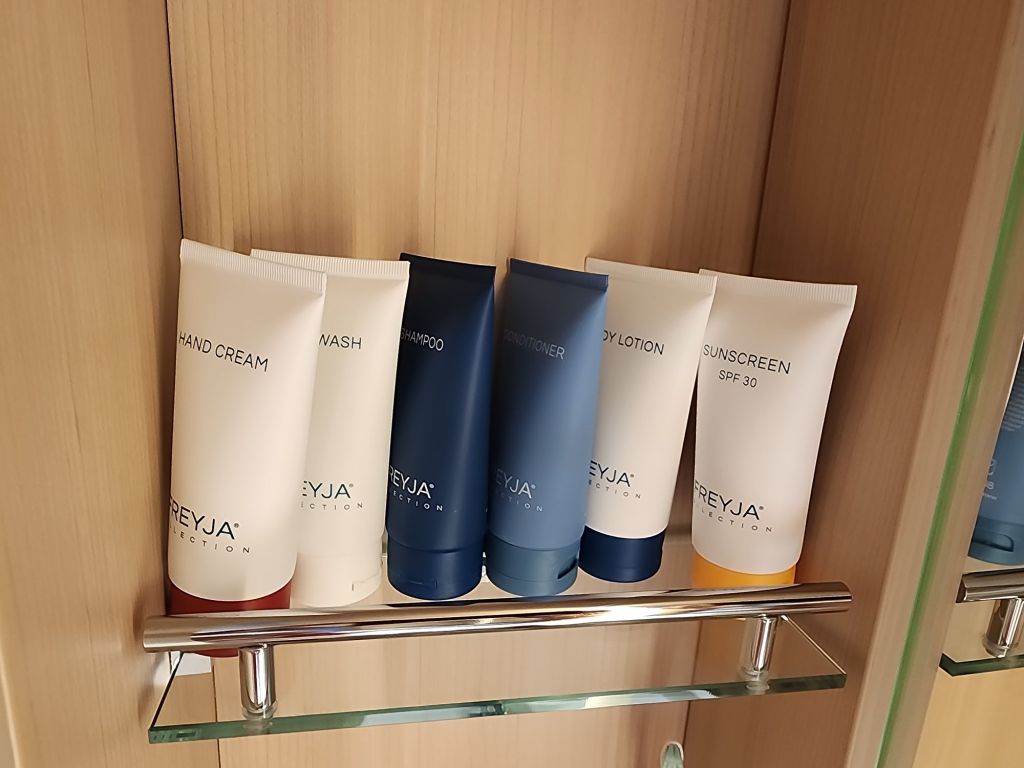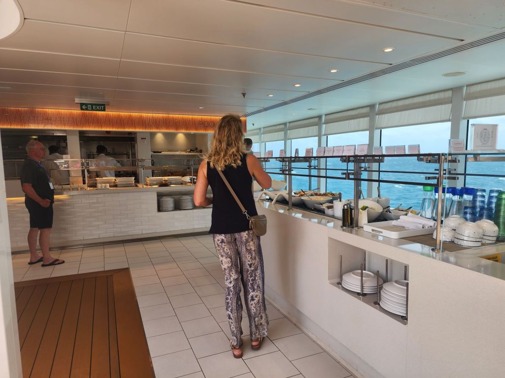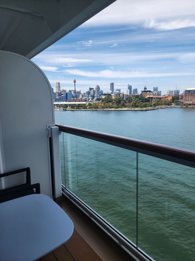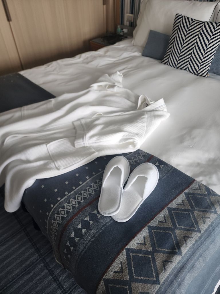 We have had high seas and low visibility as we were to moor in the Torres Strait at Thursday Island, which prohibited the tenders from making the landing, so our stop there was canceled. I thought I might take this opportunity to show you a typical Sea day on Viking Ocean voyages, and a bit about our stateroom. It comes equipped with robes and slippers, a blanket for naps, Freya products for the bath and body, a Nespresso machine with daily coffee and a fridge, restocked daily with drinks, nuts and chocolate!