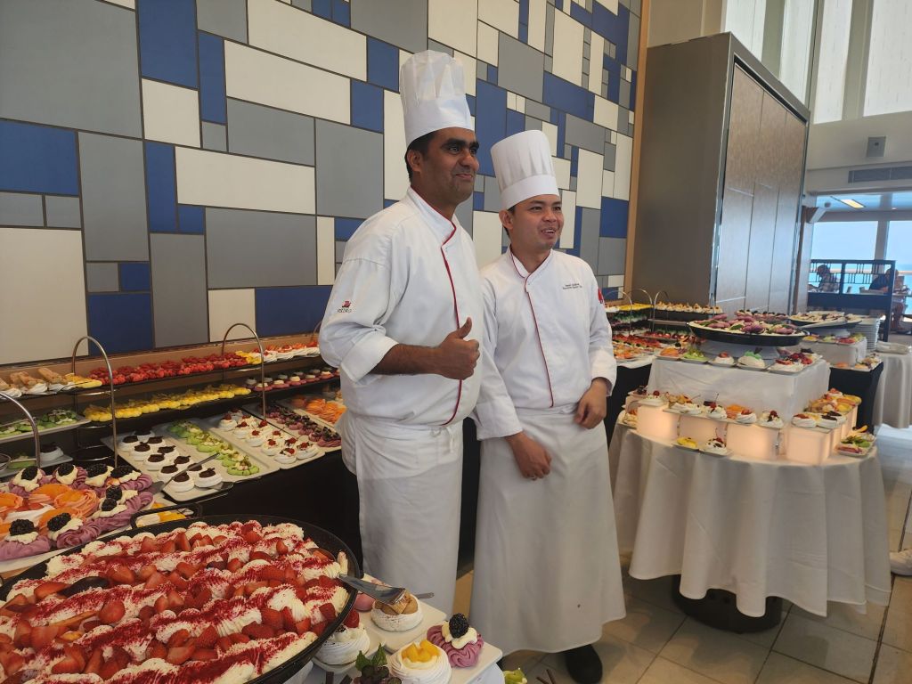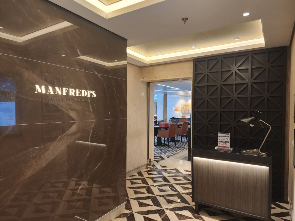 Specialty restaurants, with 1 reservation guaranteed in each for every cruiser on each cruise, Manfredi’s Italian and Chef’s Table with set menus changed every 3 days. The later is usually an adventure in eating and less adventuresome folks often miss this gem! After every cruiser has chosen their favorite time and date, these 2 venues are open for repeated reservations so we have taken advantage and have 2 reservations in each this trip!
