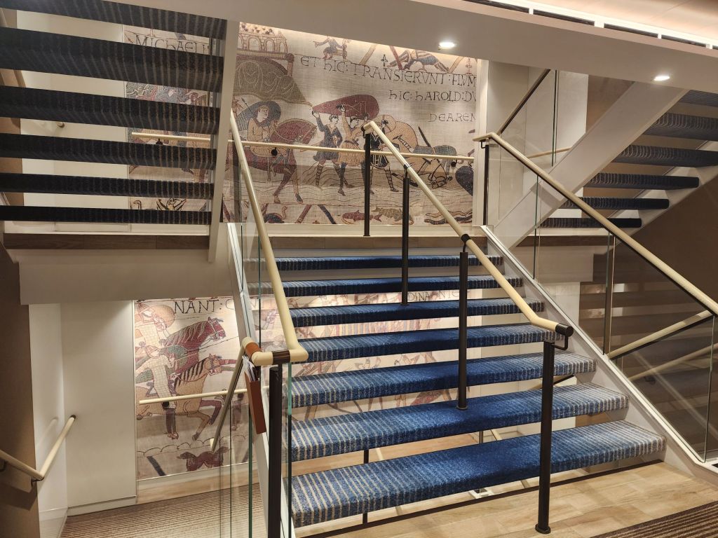 Even the stairwells are filled with art! There is a one of a kind photograph of the Bayeaux Tapestry, which is explained on a ship walk around by the resident historian.