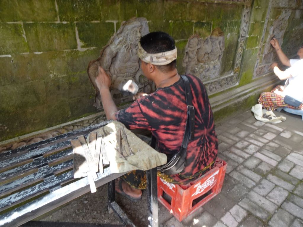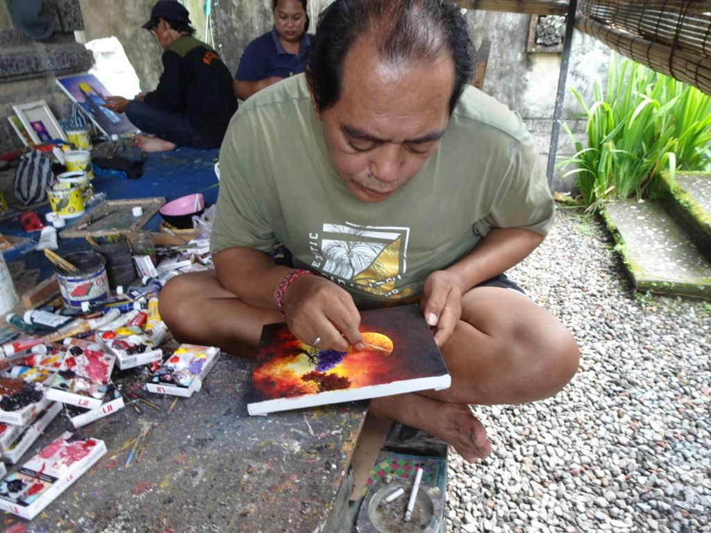 We visited several workshops, for making Batik, the native fabric designs they wear on sarongs, shirts, and other items, a silversmith making jewelry, and artists making their designs with a toothpick and bamboo stick, hammered into a rough brush.