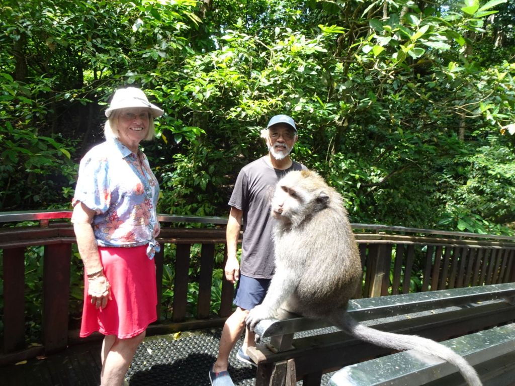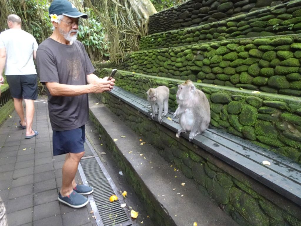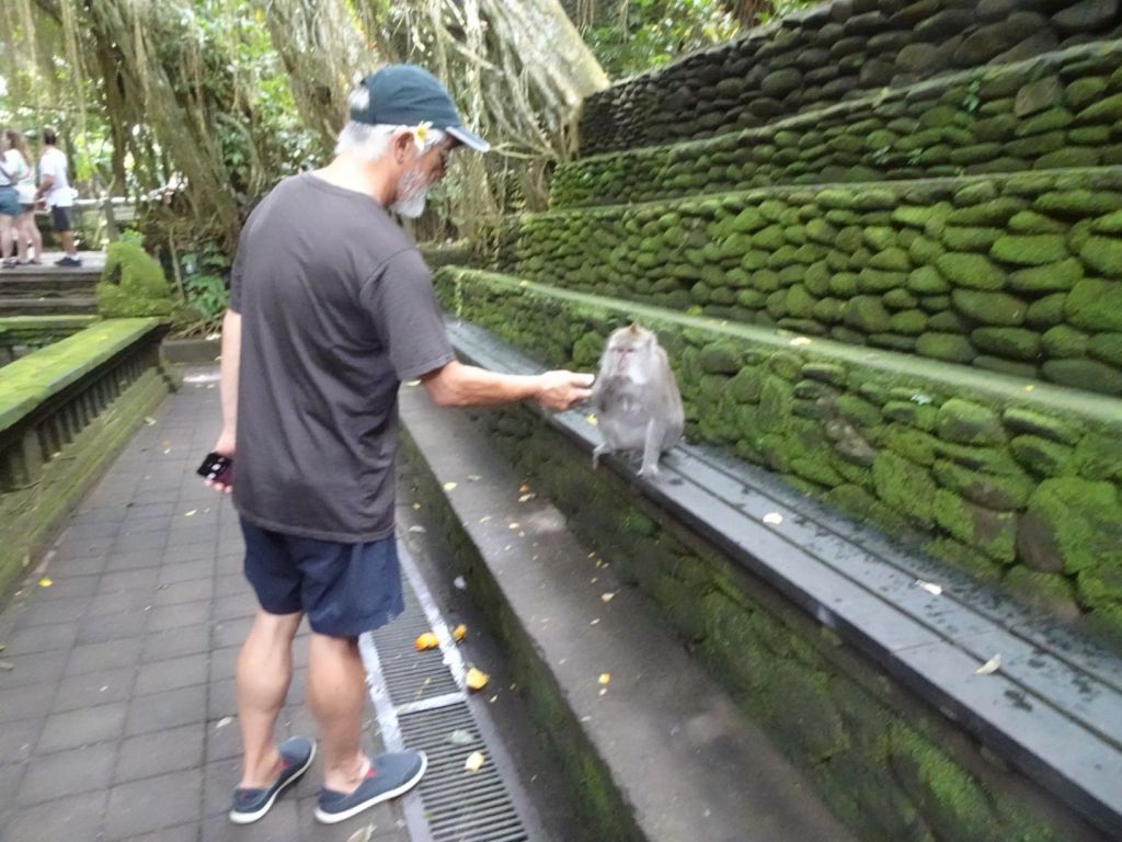 Our next visit was to the Monkey Forest where e could watch 1 is the 2 species of monkeys on Bali, the long tails Macaques