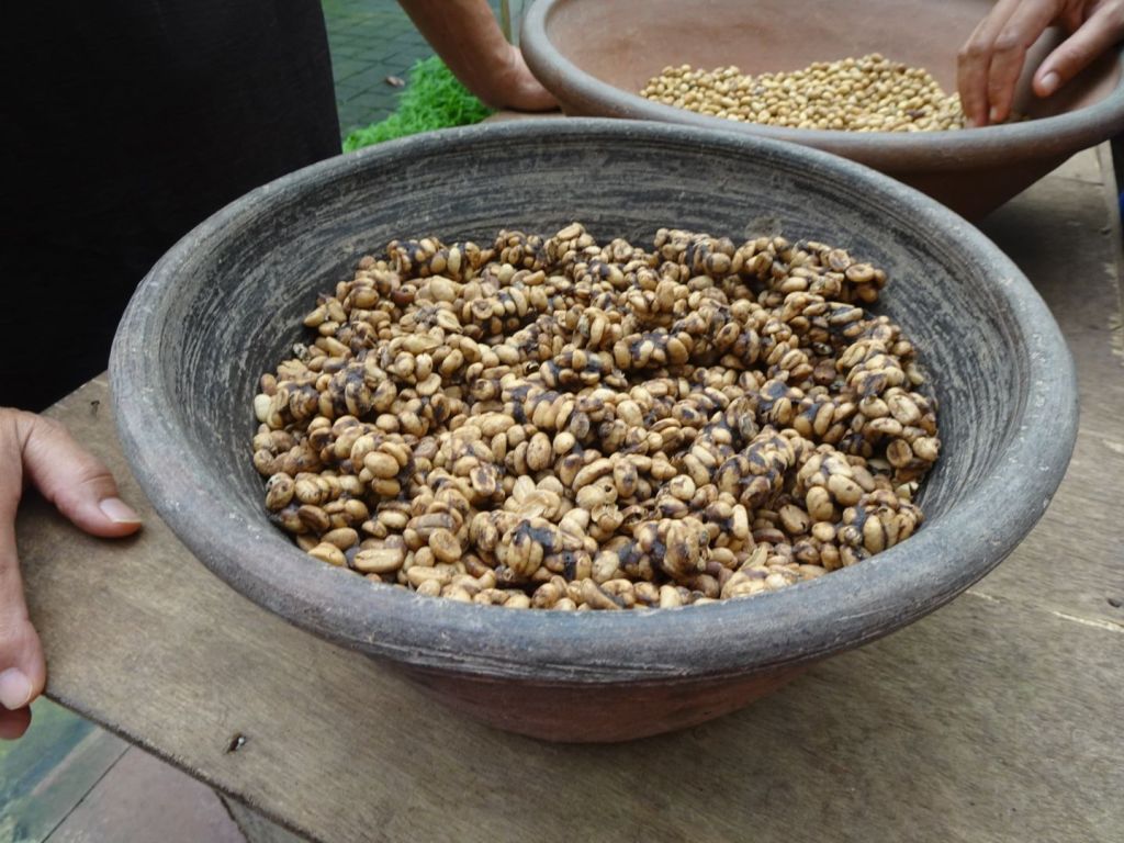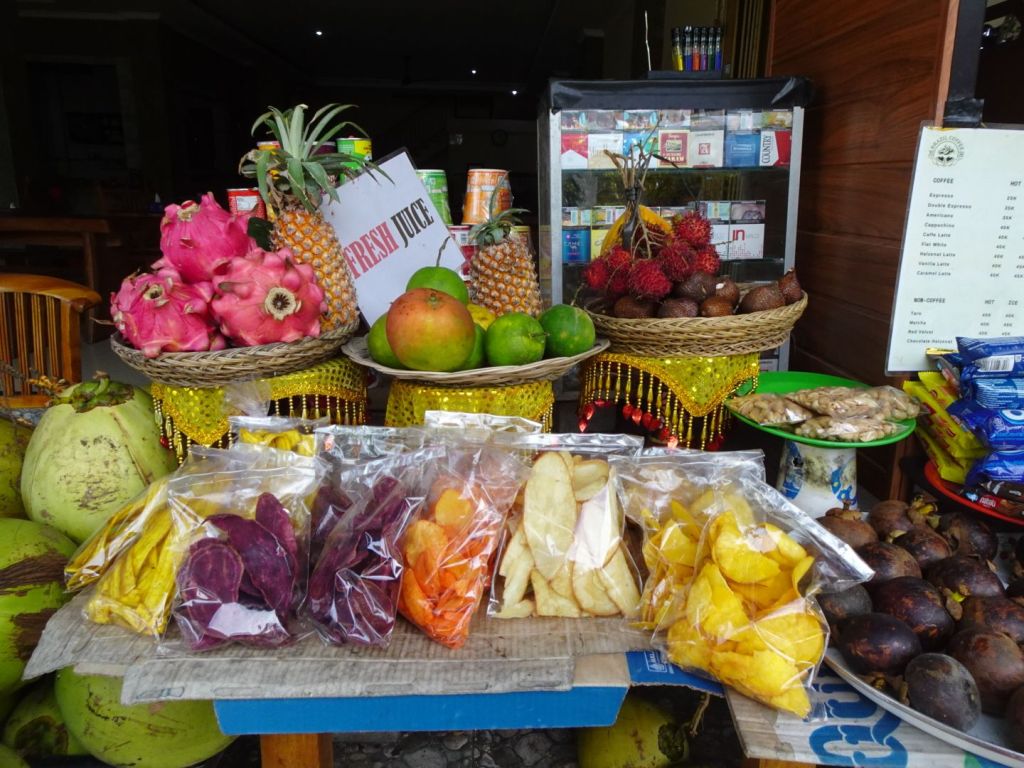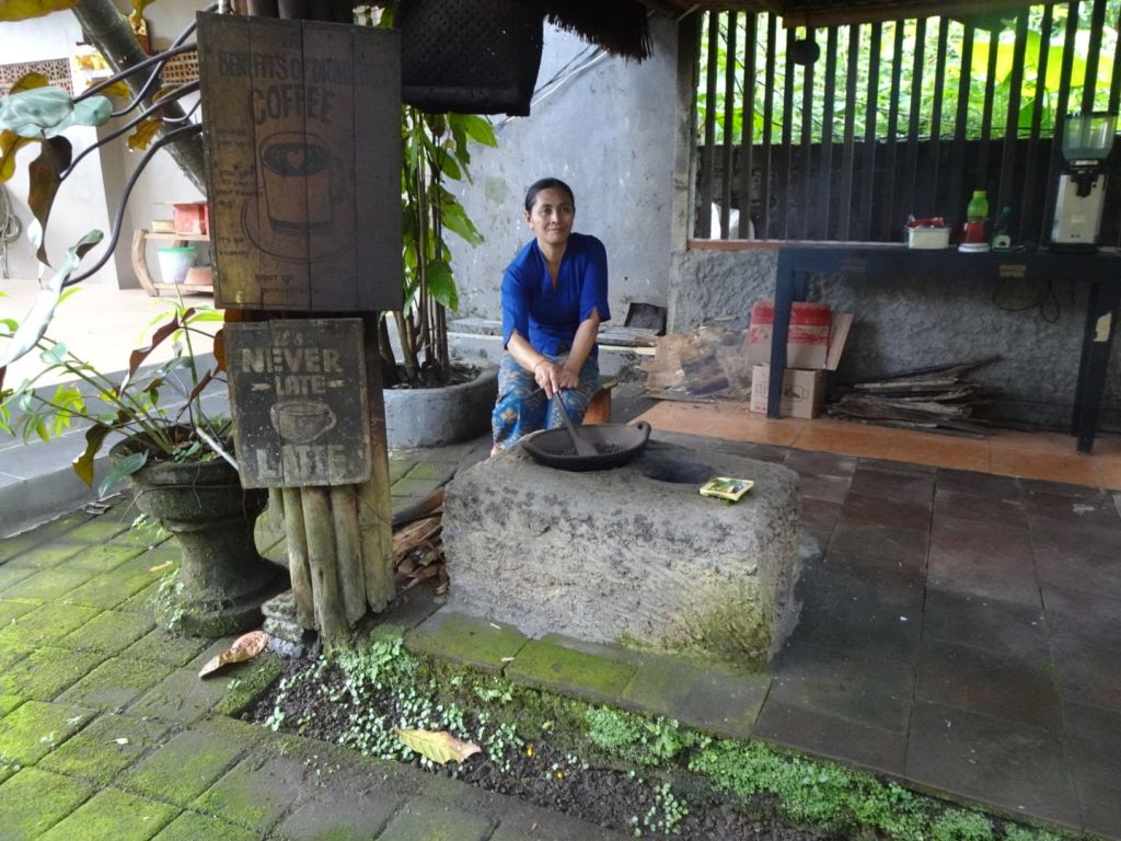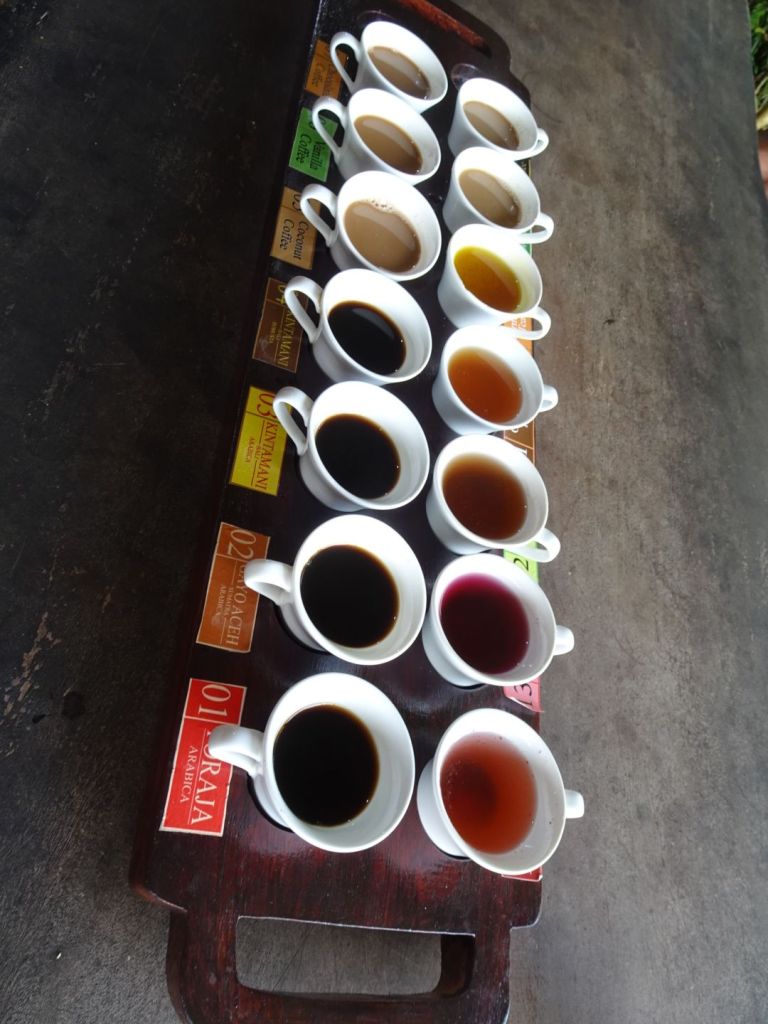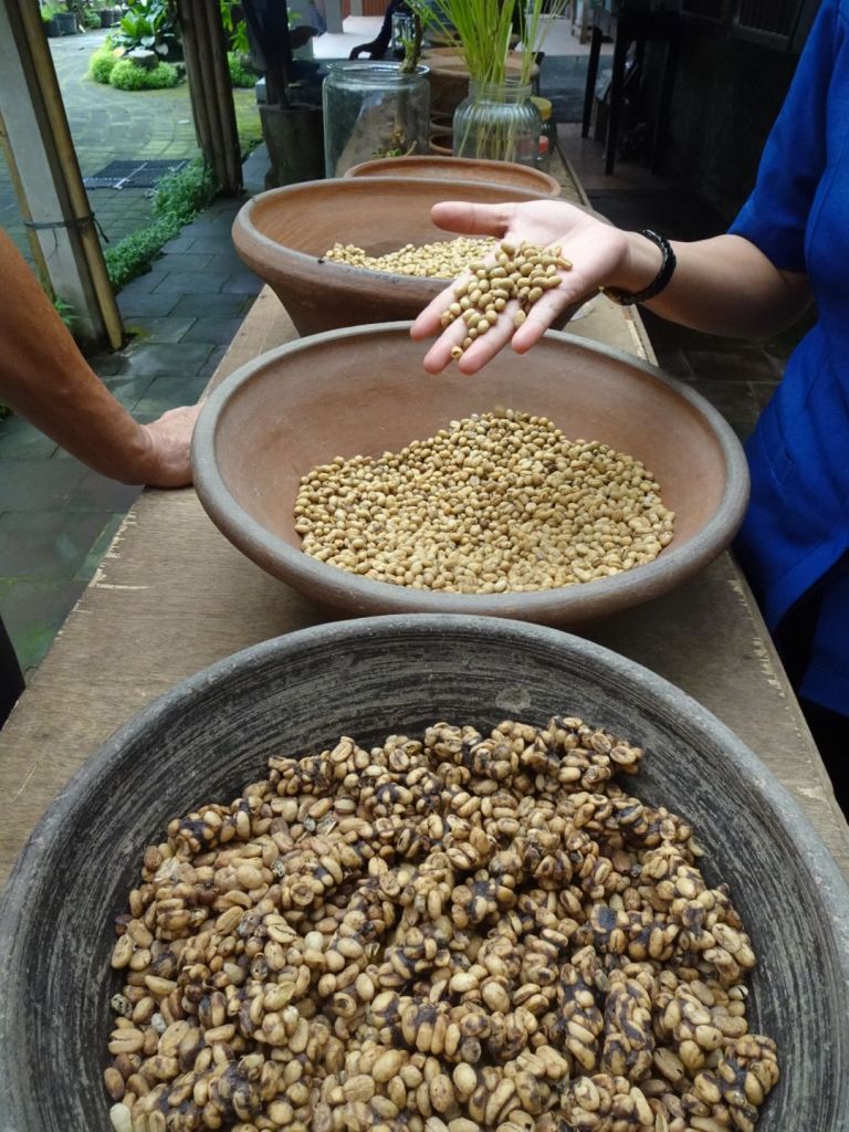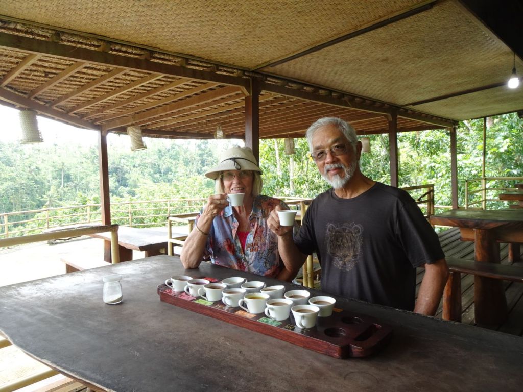 We had lunch on a restaurant overlooking Lake Batur and the volcano, Mt Batur and afterwards visited a coffee plantation to try some unique coffees and teas