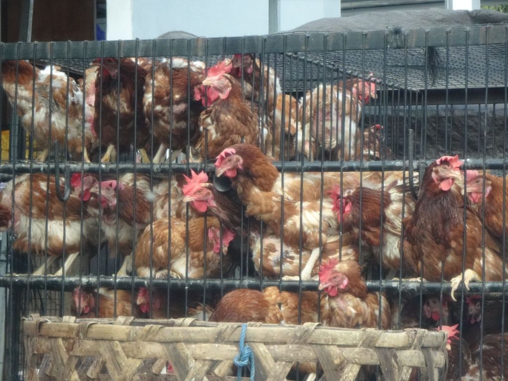 Traffic was horrible, so it took quite a while! Imagine rush hour with 1000s of scooters, at one point 10 scooters side by side at an intersection. They don’t care about lines on the road and drive all over the place, cutting between cars, sometimes up to 4 people on a scooter. At one point our driver took side roads and it was quite but they were almost 1 lane. We passed fruit stands, chickens in cages, and many strange loads on scooters!