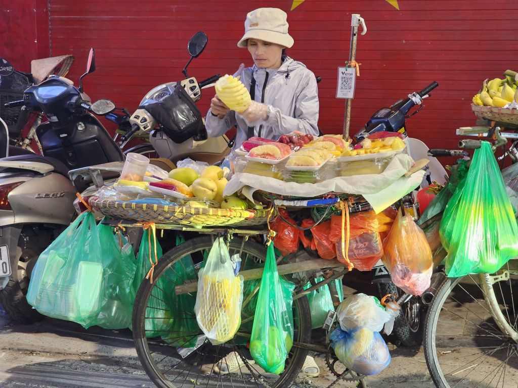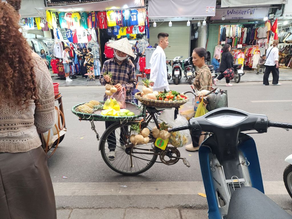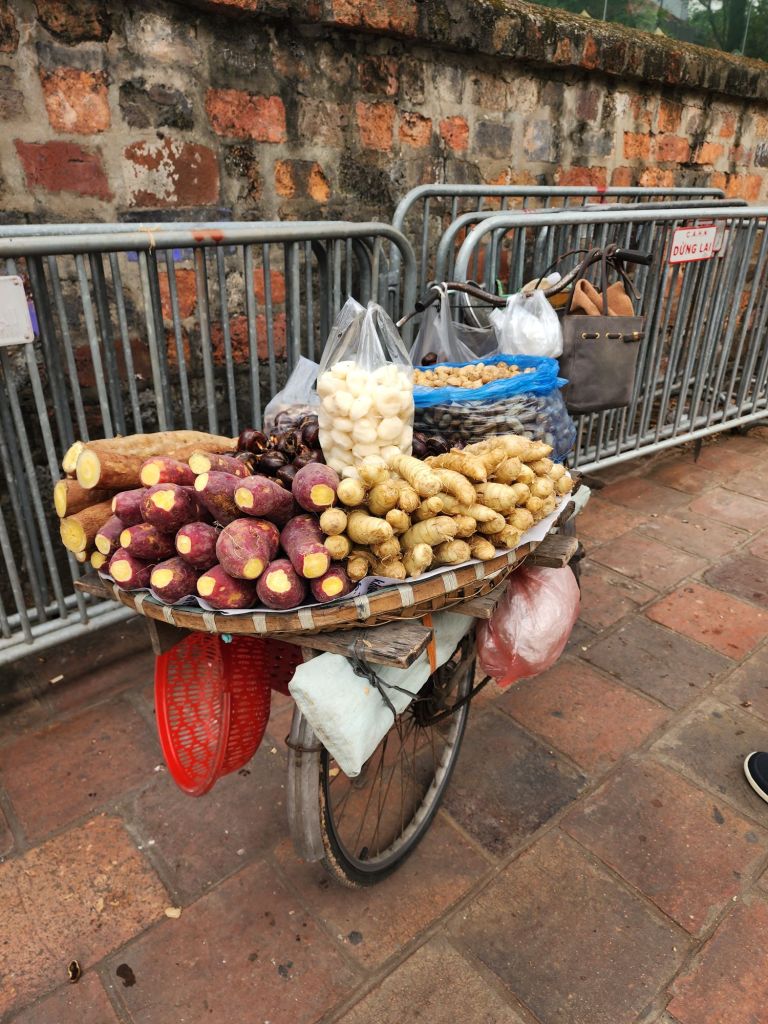 Street vendors sell everything, carried on many vehicles!  Bikes, carts,  even wheel chairs and baby carriage