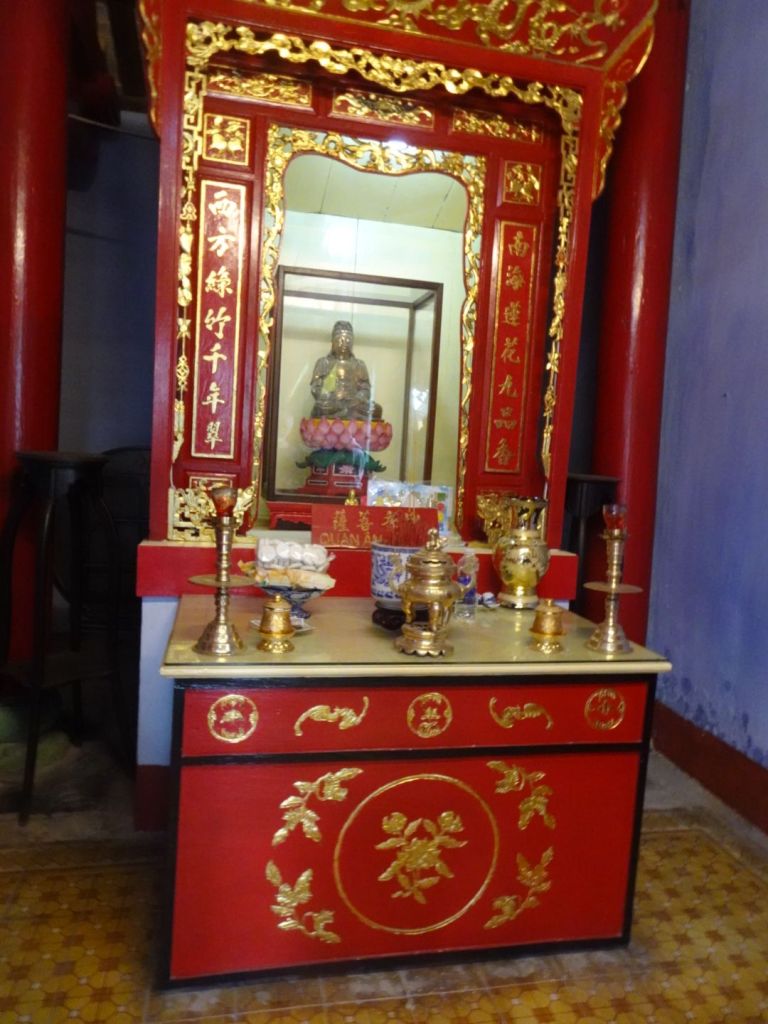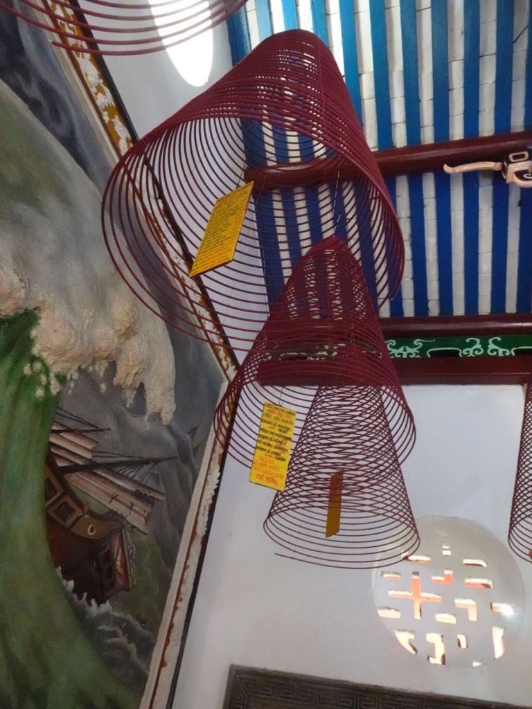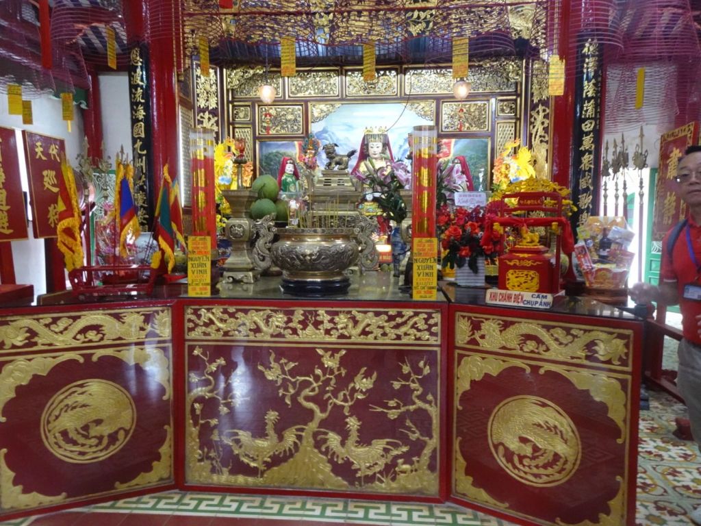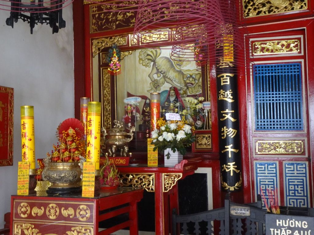 Our guide joined us at the hotel at 8:30 for a half day walking tour around the old town, settled by Chinese in 17th century. The individual Chinese communities had gathering halls, just like in San Francisco. We visited a couple of them. including the Cantonese one. Each have temples for Various religious beliefs, Confucism, Buddhist, Daoist (worships the ancestors), and Goddess of the Sea. She brought them safely to HoiAn. I will label them as I post picts.