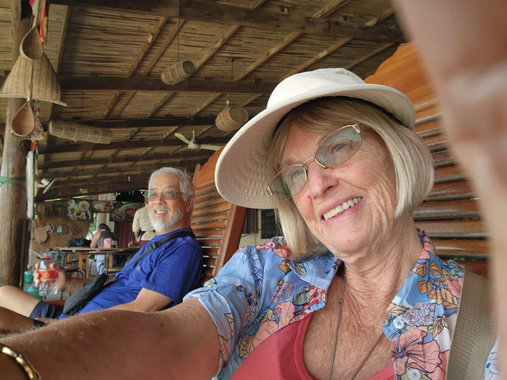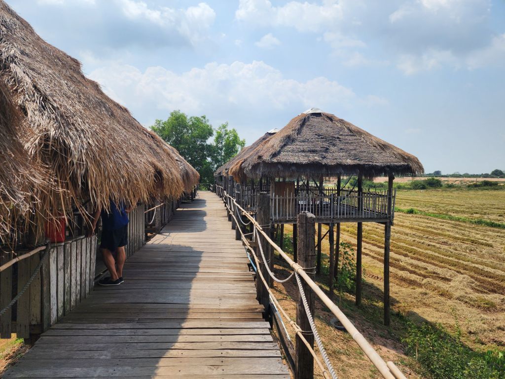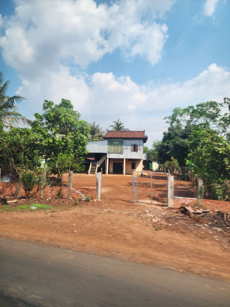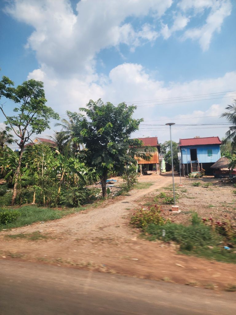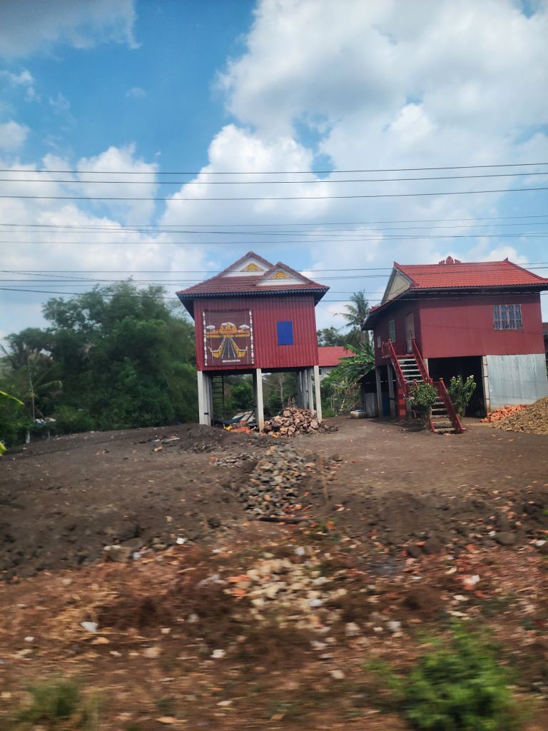 our afternoon was all on the road, a 6 hour trip via a very comfortable bus, north to Siem Reap where we will spend the whole day tomorrow at Angkor Wat! The style of houses along the road was interesting, raise to allow cool air flow, often painted with signs.