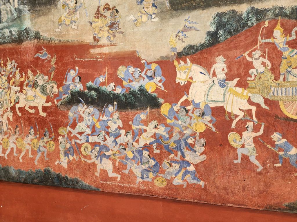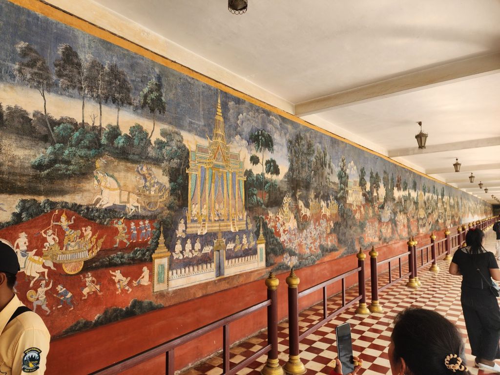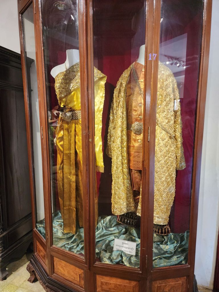 some of the Royal garments and parts of the longest painted mural in Cambodia depicting a story of the early king