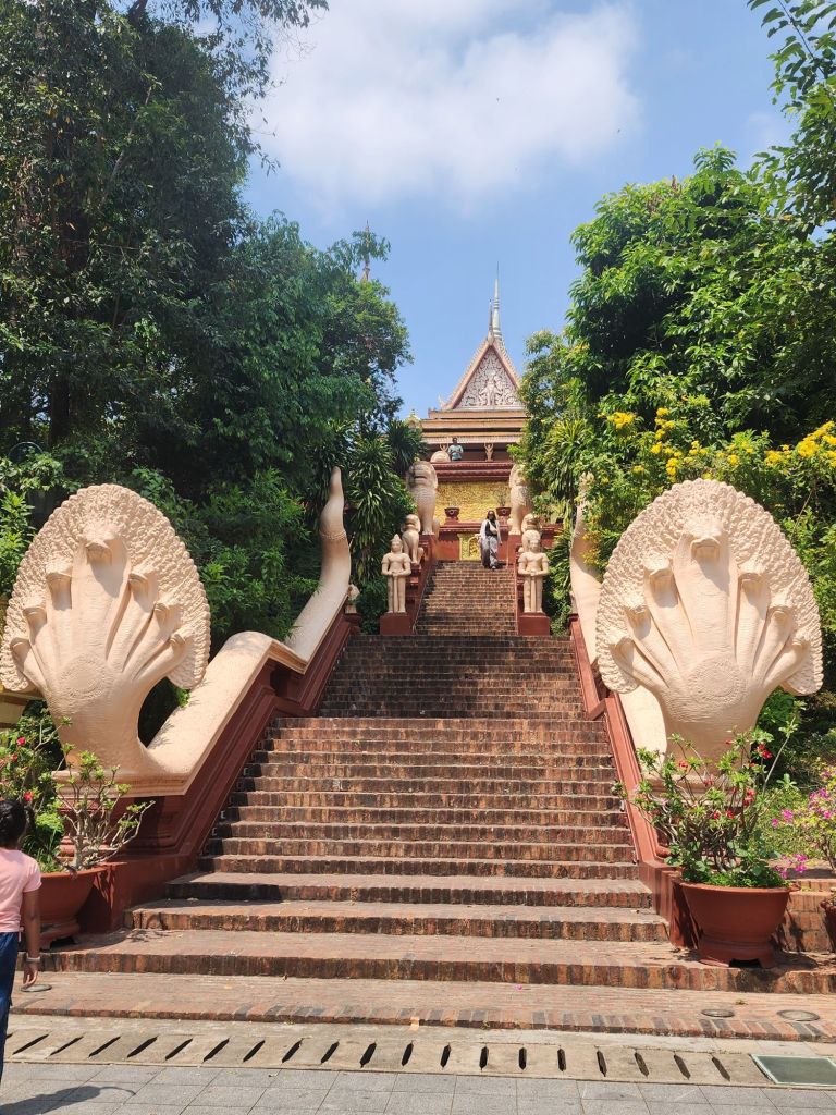 The word Phnom means Hill and the word Penh is a lady’s name who helped the local peasants establish the city. We visited the pagoda to her, and the city