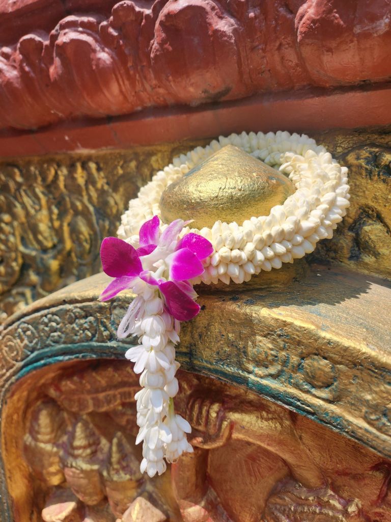 People were paying her as we entered. The lady in Red was chatting with a statue of Penh, explaining something on her phone! quite a sight! We walked down the other side of the hill and around the bar to our driver.