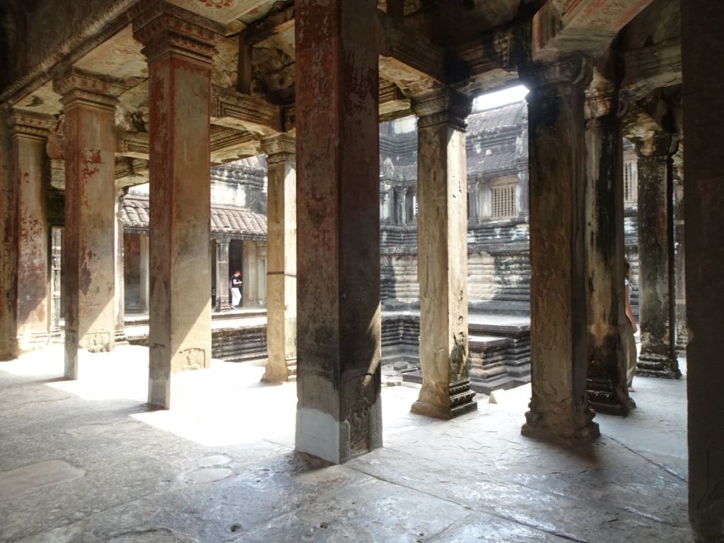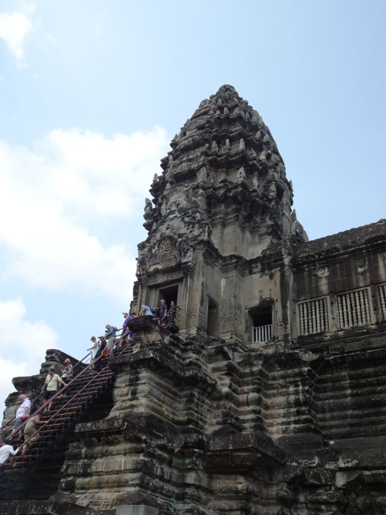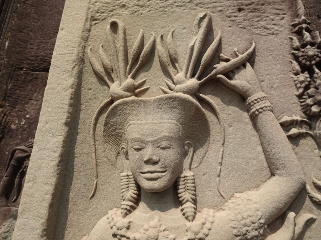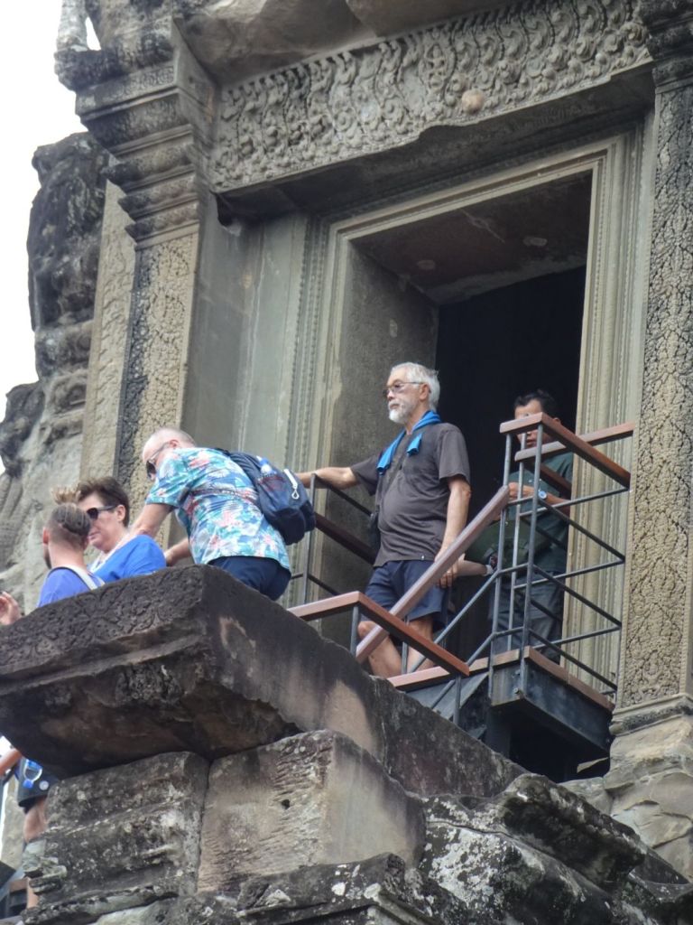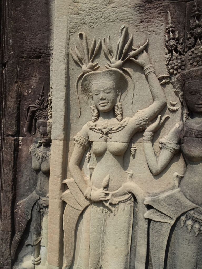 The carvings and designs on the walls were impressive and some quite unique. The ballistrades are not smooth, and the design allows breezes to swirl inside the building. They are specifically designed also to cast shadows in the early light of the silhouette of the Angkor’s towers, one, three and five towers. Amazing. our guide showed us pictures of these shadows as the sun was already too high for us too see them.