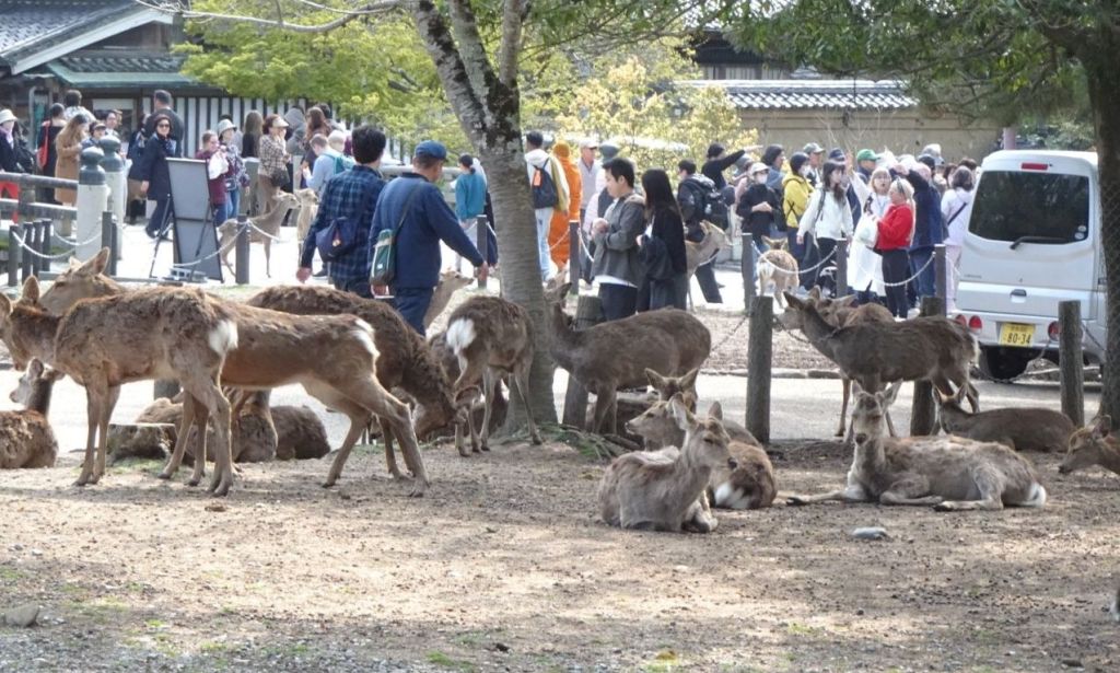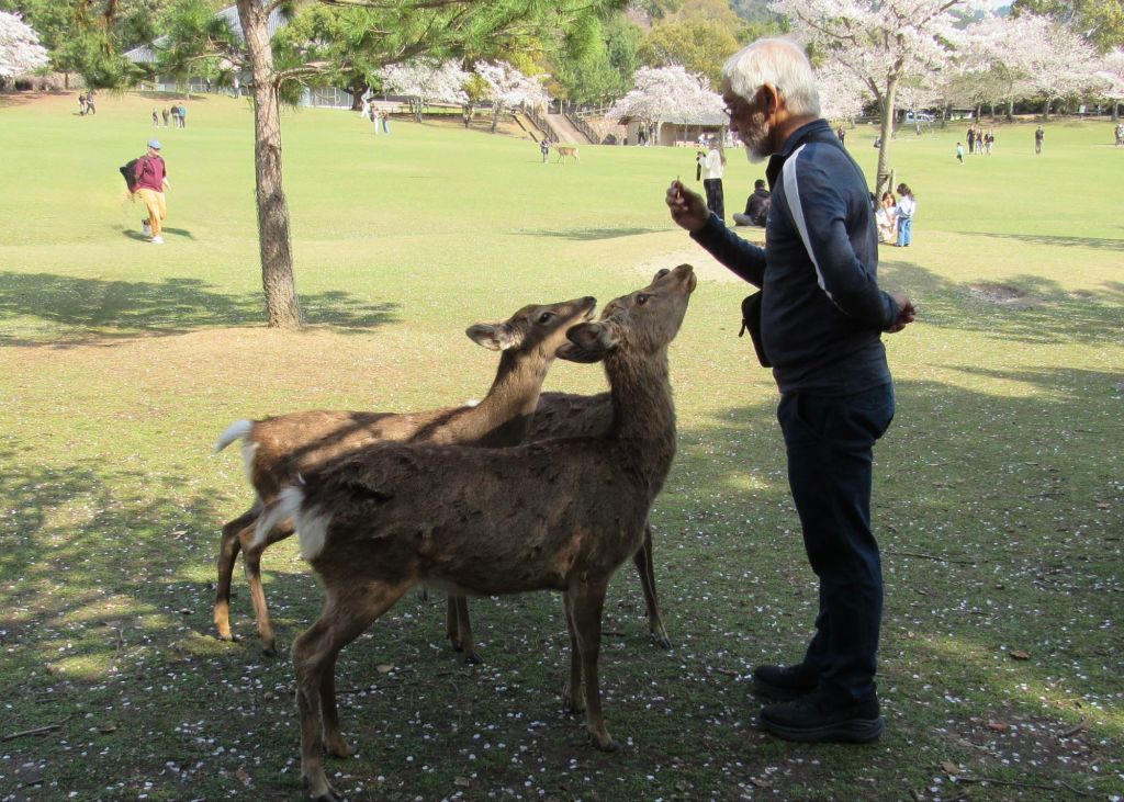 The deer are wild and go back up the mountain in the even, appearing again about 6 AM each morning. However, they have learned to now to receive a cracker! Very entertaining! There are about 2000 of them!