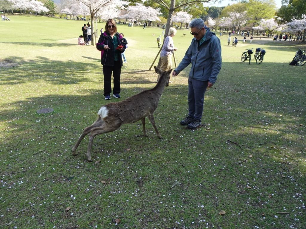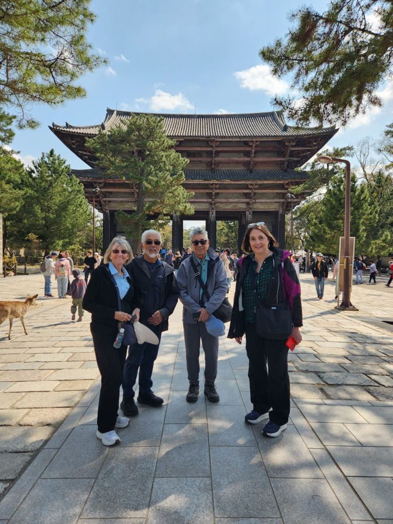 We left Osaka today for Nara, to visit the park, the amazing deer, and the Temple. it is the oldest Buddhist temple in Japan with a large bronze Buddha inside. We entered first thru this large gate